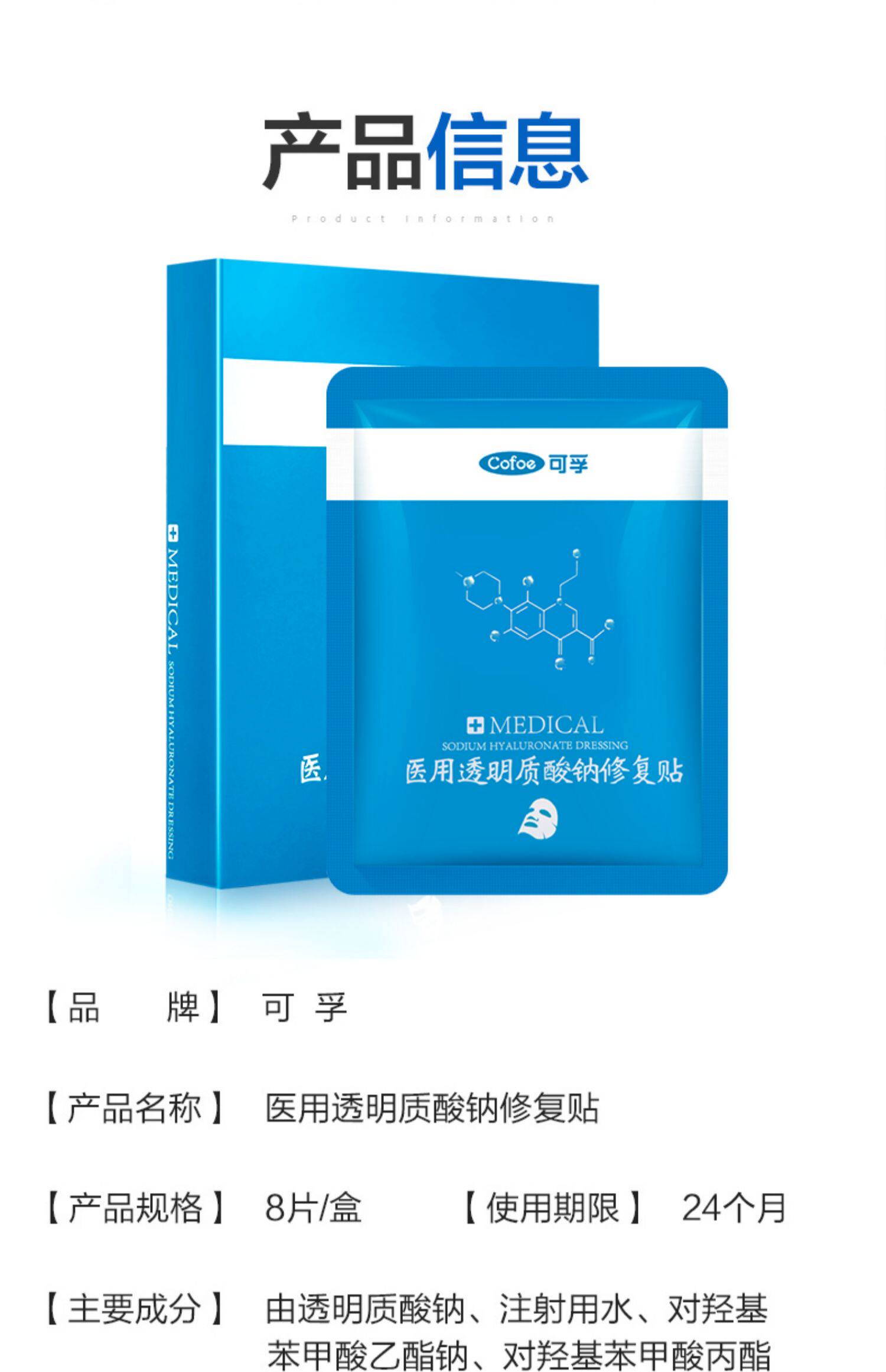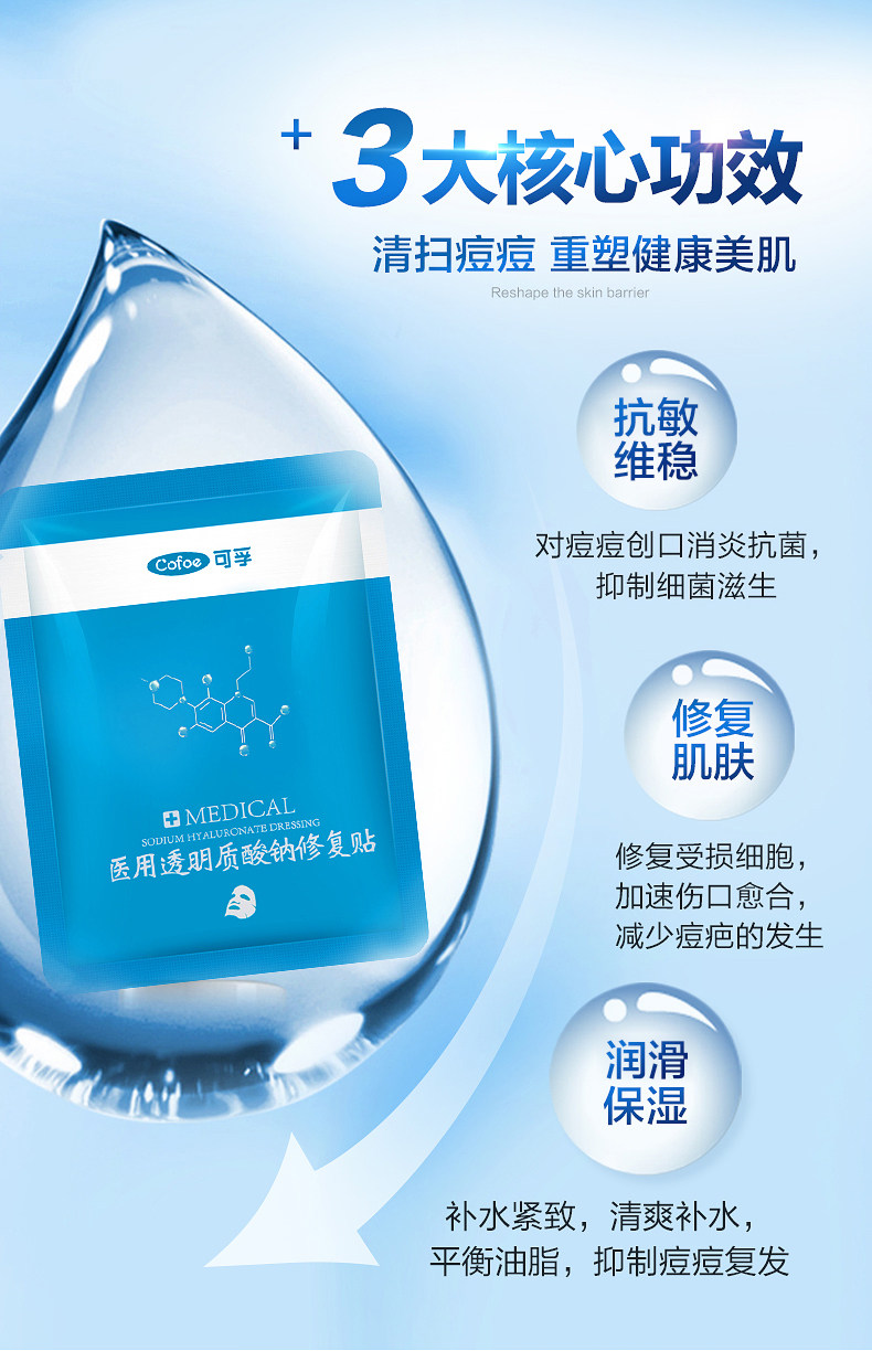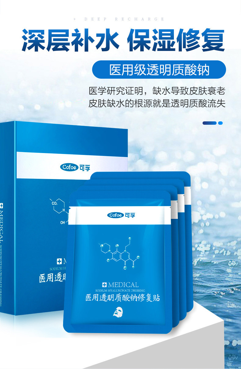 可孚 Маска для лица, увлажняющий прозрачный восстанавливающий холодный компресс для ухода за кожей с гиалуроновой кислотой, скрывает прыщи