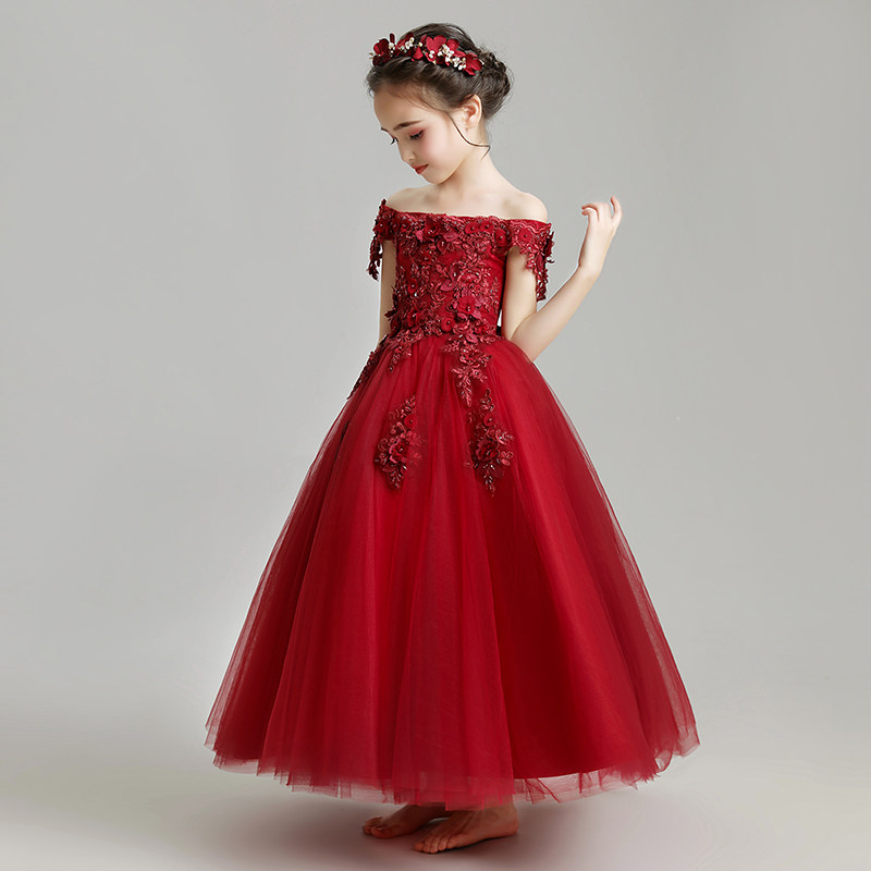 Наряд маленькой принцессы, длинный наряд для музыкальных выступлений, из фатина, благородный крой, в западном стиле