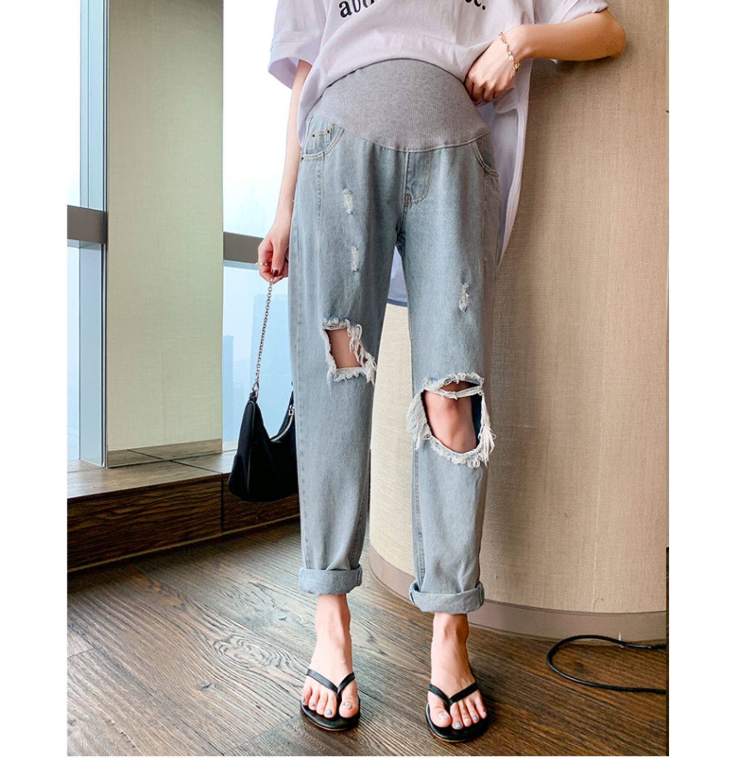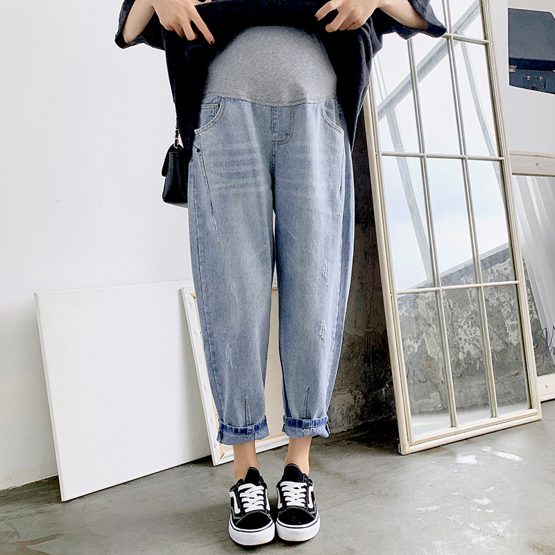 Осенние штаны, летние весенние тонкие джинсы для беременных с поддержкой живота, коллекция 2021, большой размер