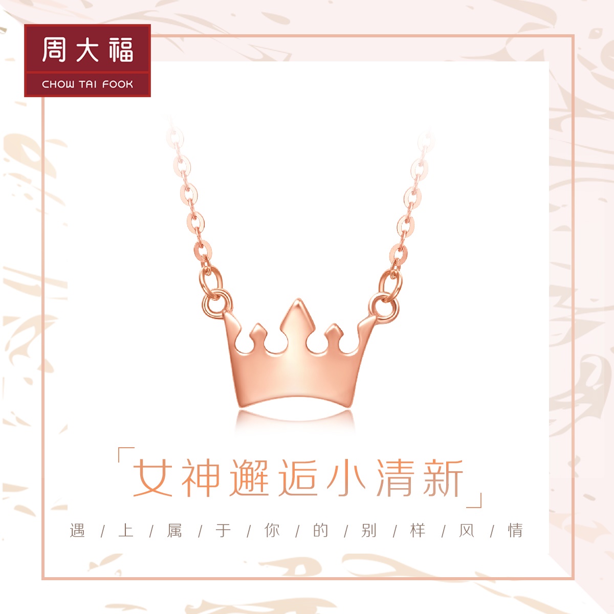周大福 Y эра богиня серия Crown Queen 18k Золотое ожерелье E124591 Подарки