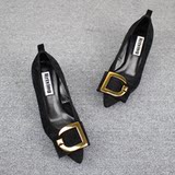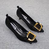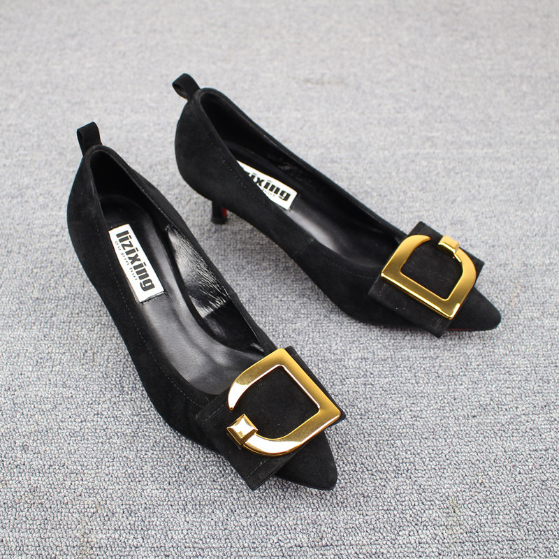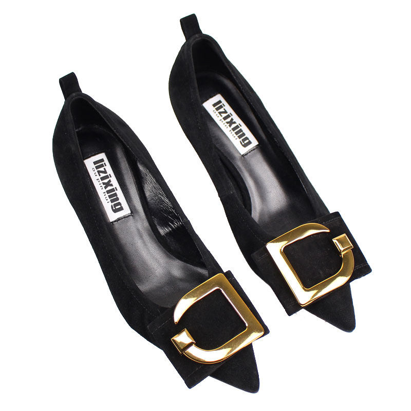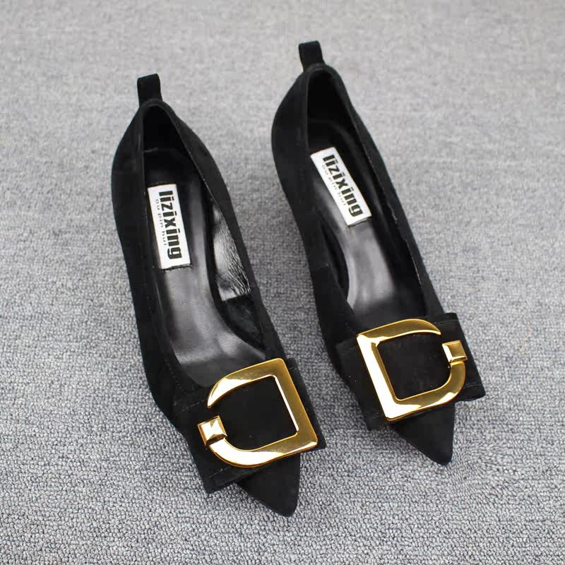 Весенняя золотая обувь с заостренным носом на высоком каблуке, европейский стиль, из натуральной кожи