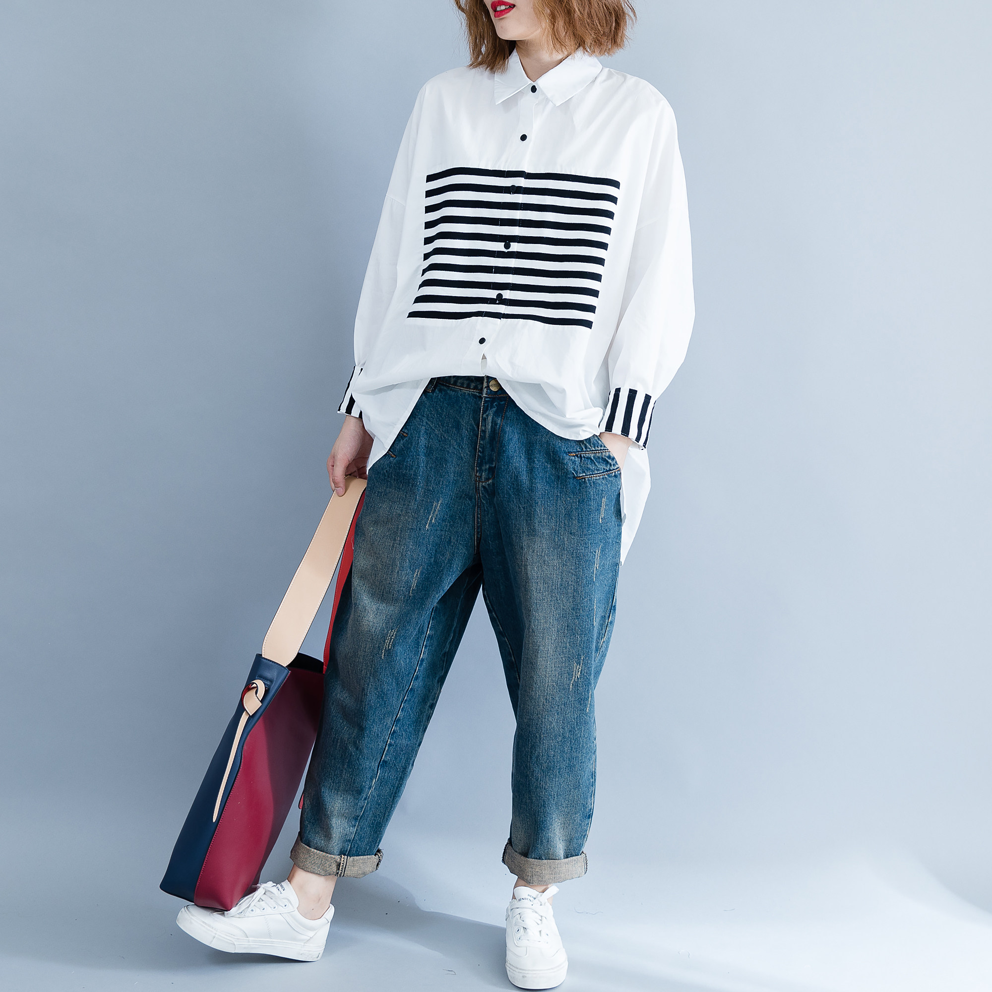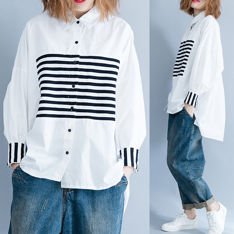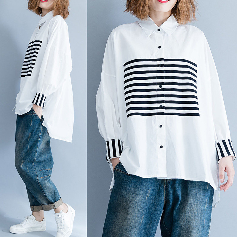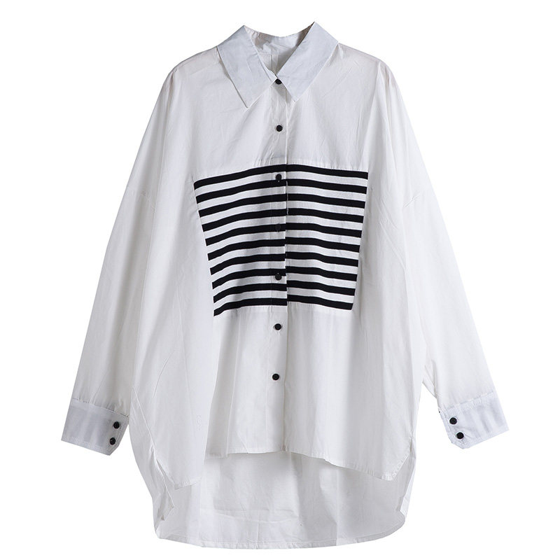 Осенняя рубашка, большой размер, 2020, в корейском стиле, ассиметричный крой, свободный крой