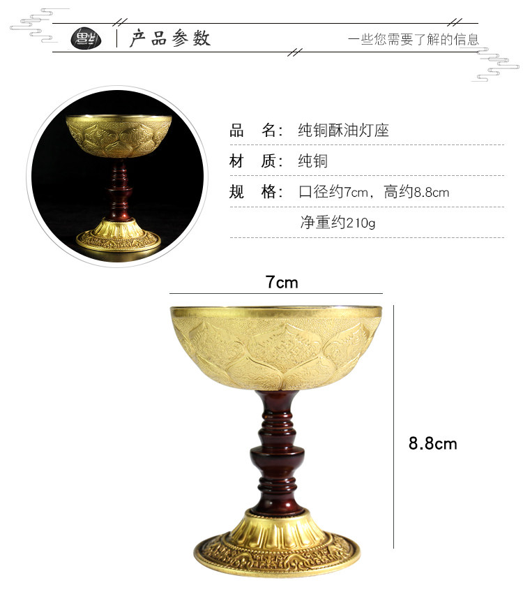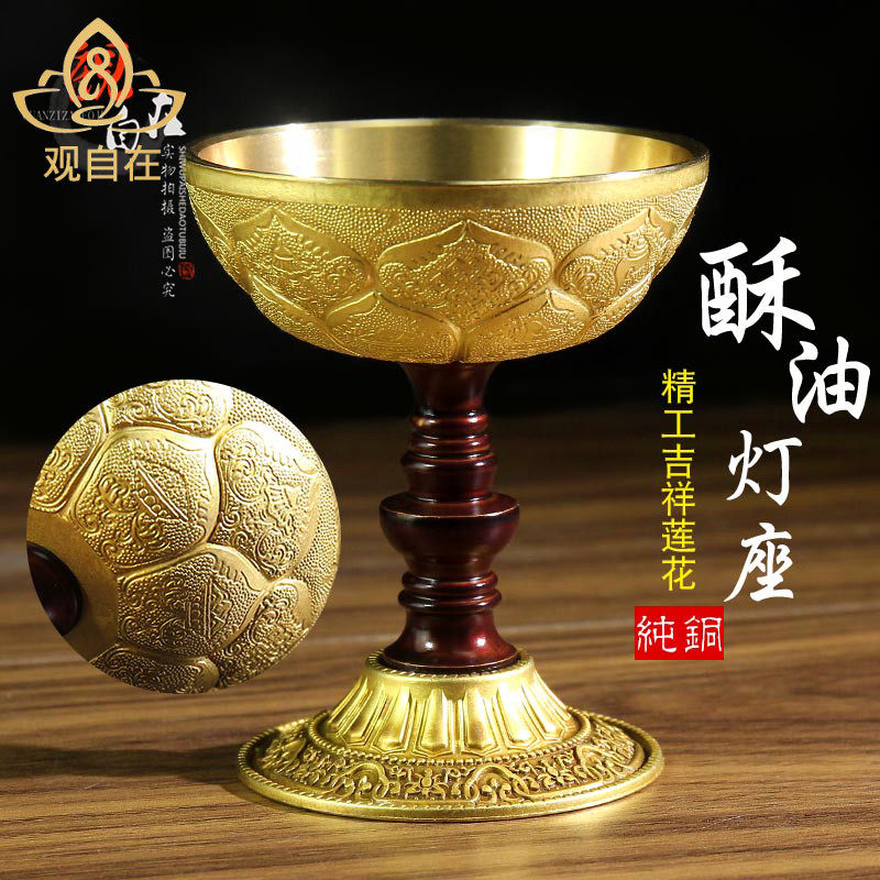 Лампы чистого медного масла Бадуки, вырезанные хуалианно лотос длинный яркий свет для свечей, маленькие светильники Дерри двойной