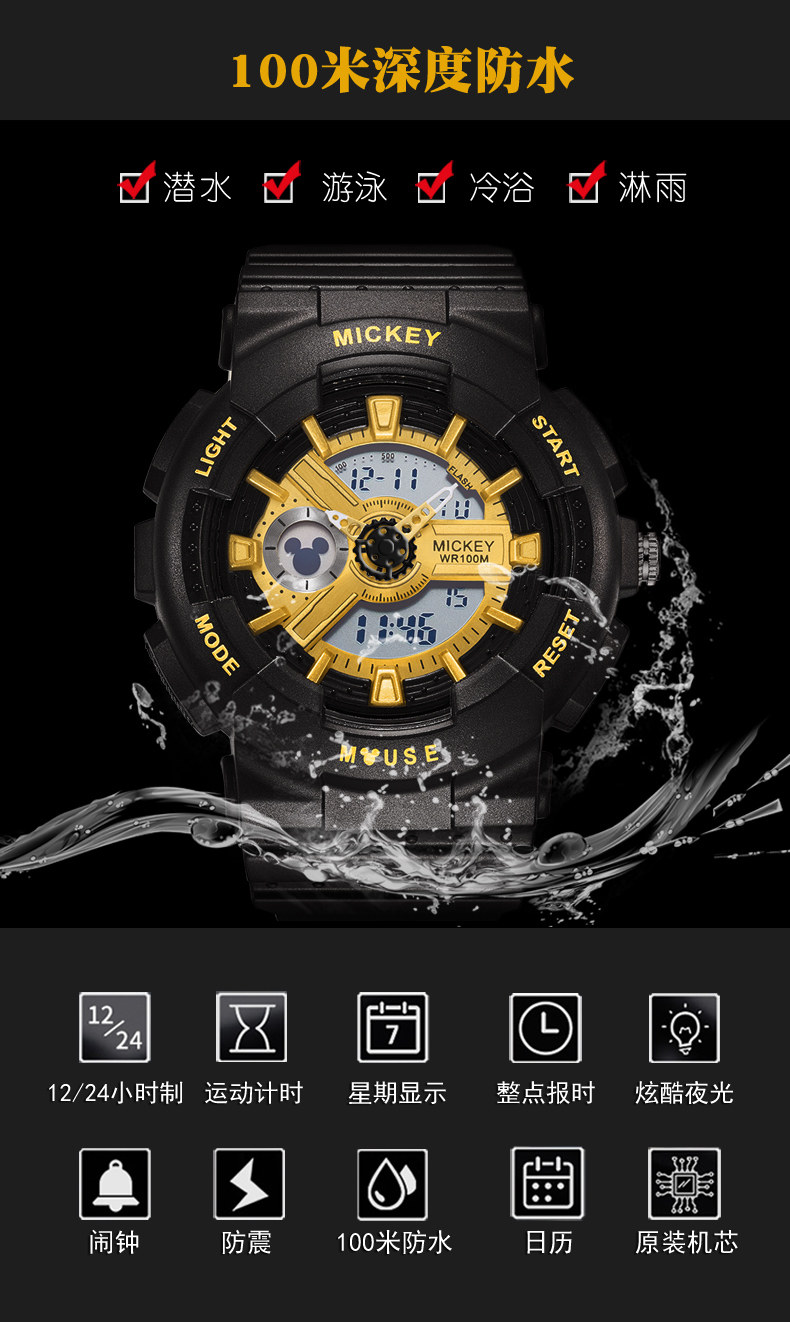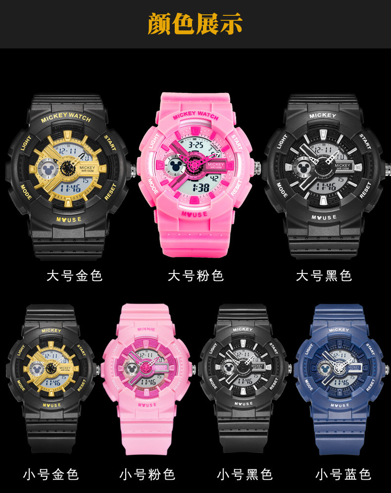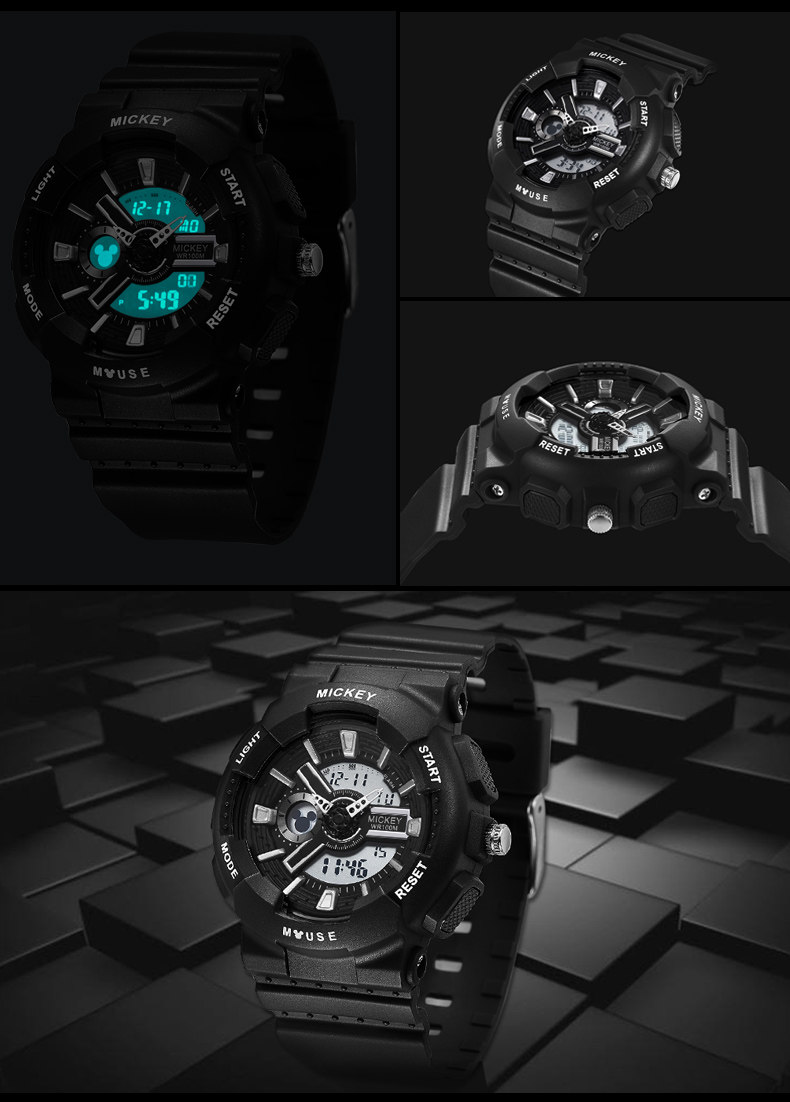 Дисней, водонепроницаемые брендовые цифровые часы, простой и элегантный дизайн