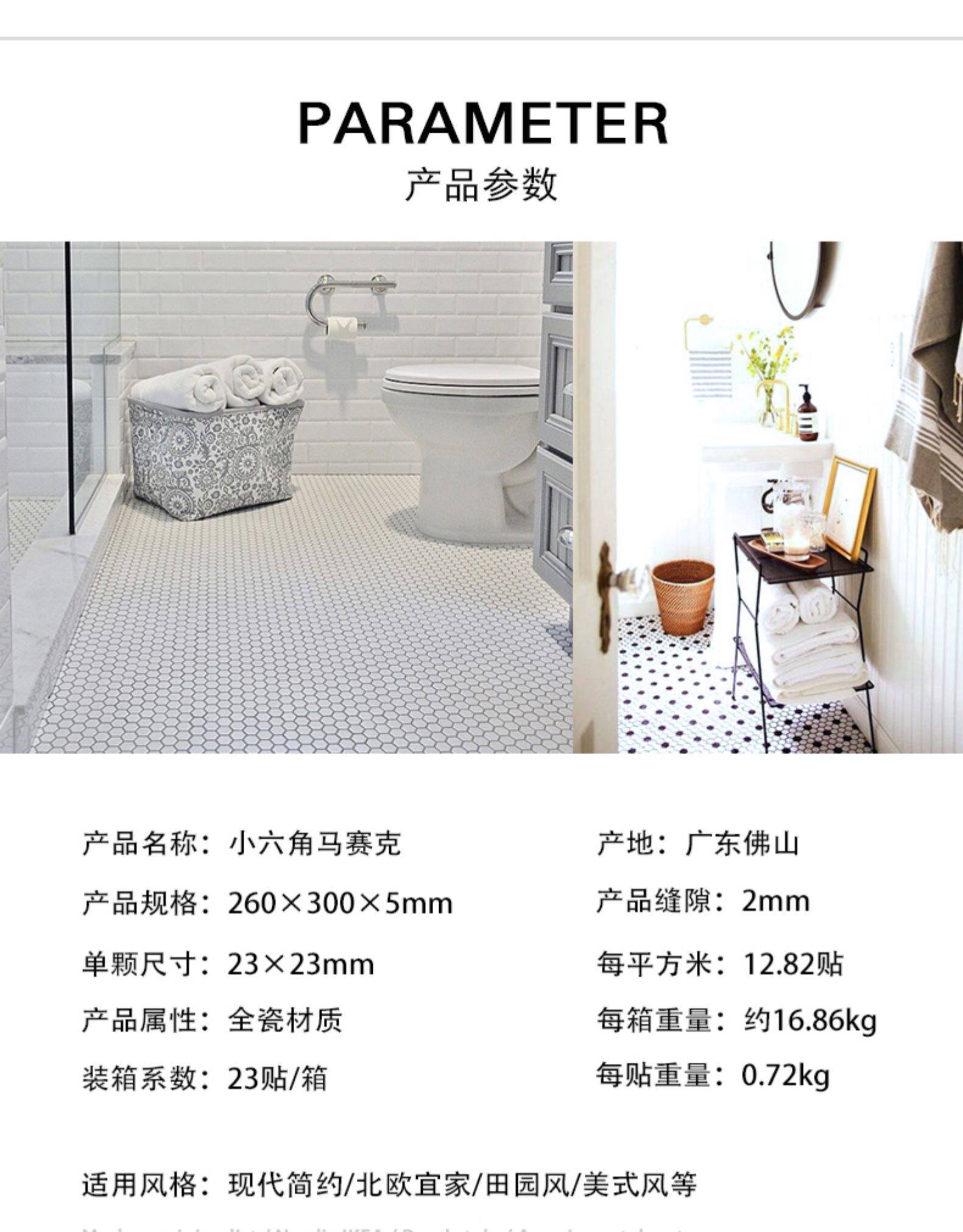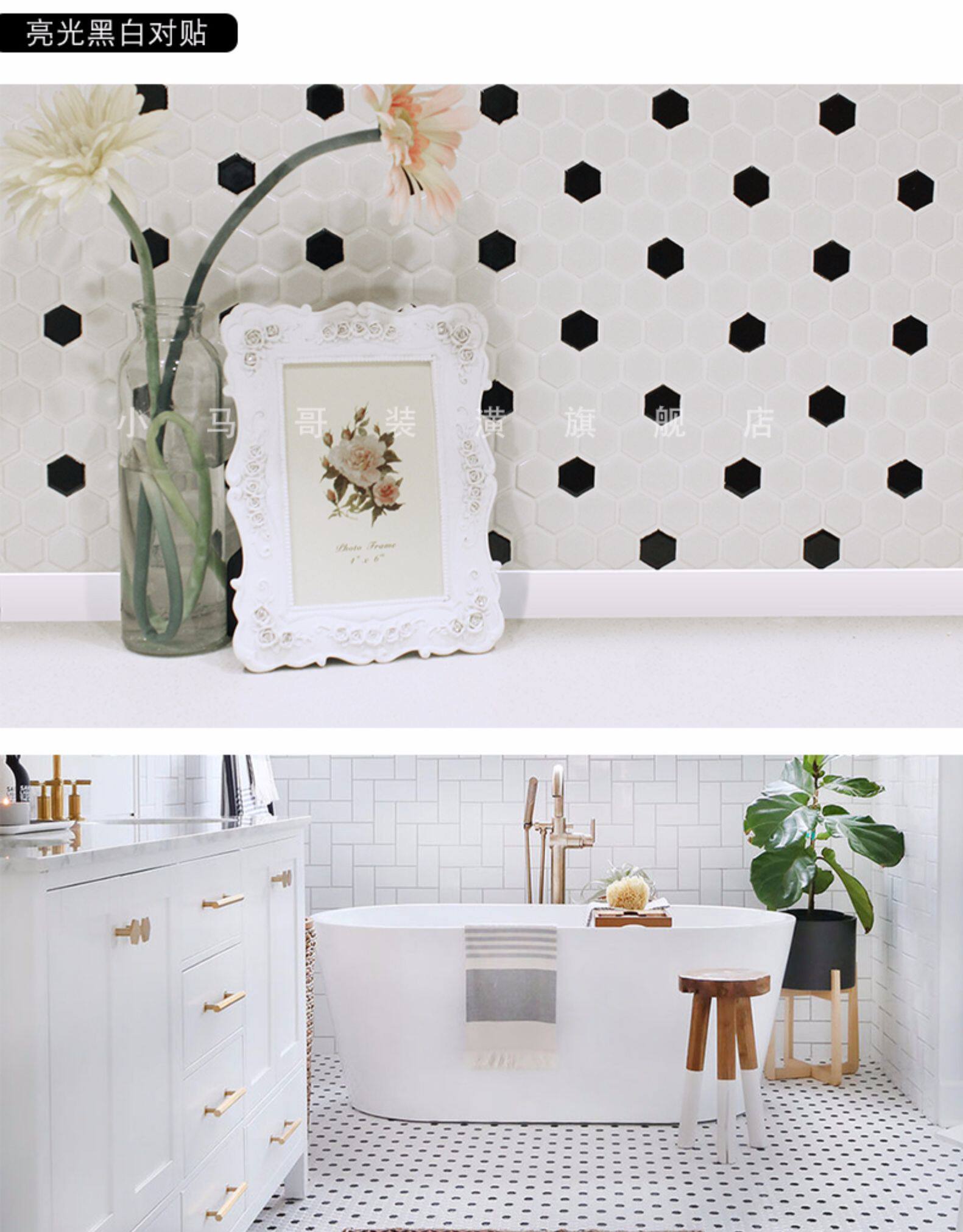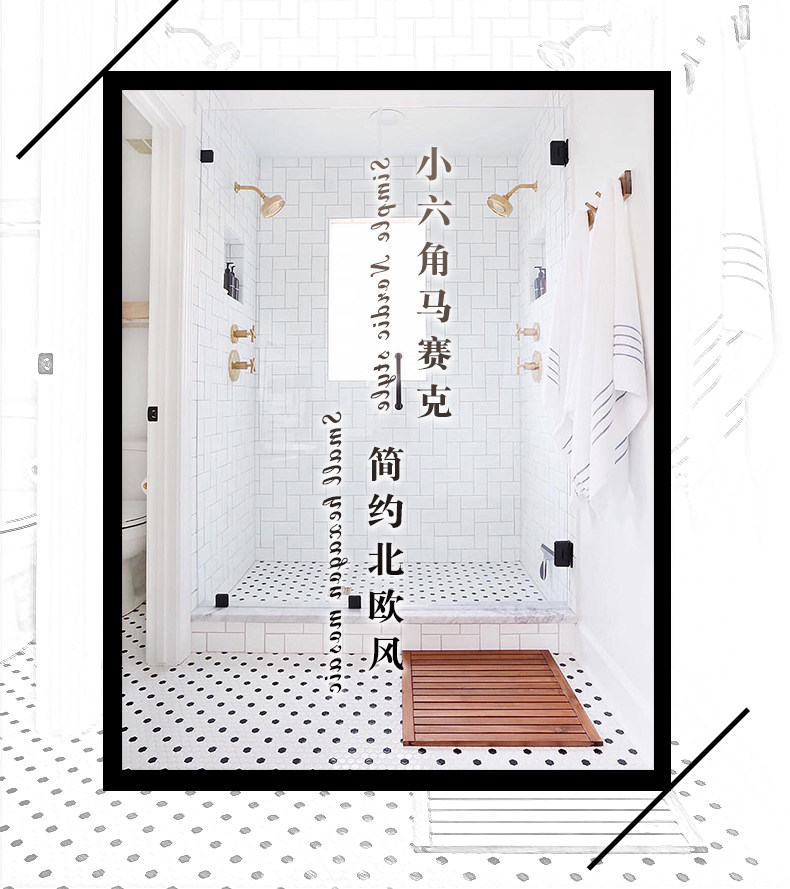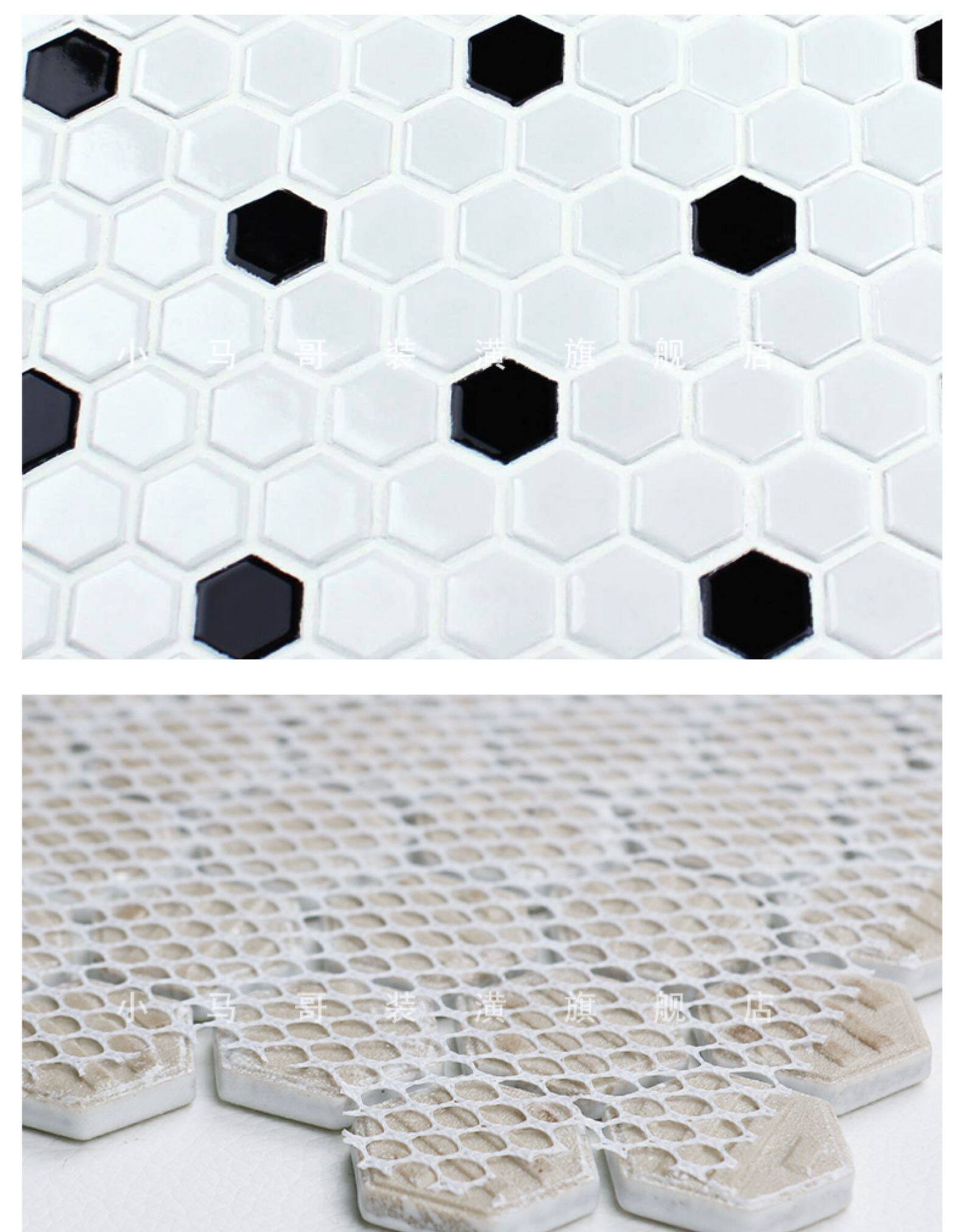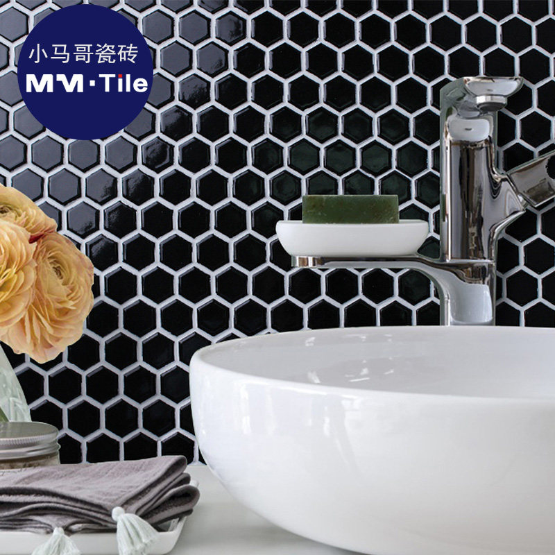 Ретро северная европейская маленькая гексагональная мозаичная плитка Черно -белая световая кухонная настенная стена Тибетская станка гексагональная ванная комната против скольжения