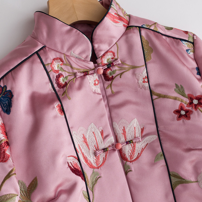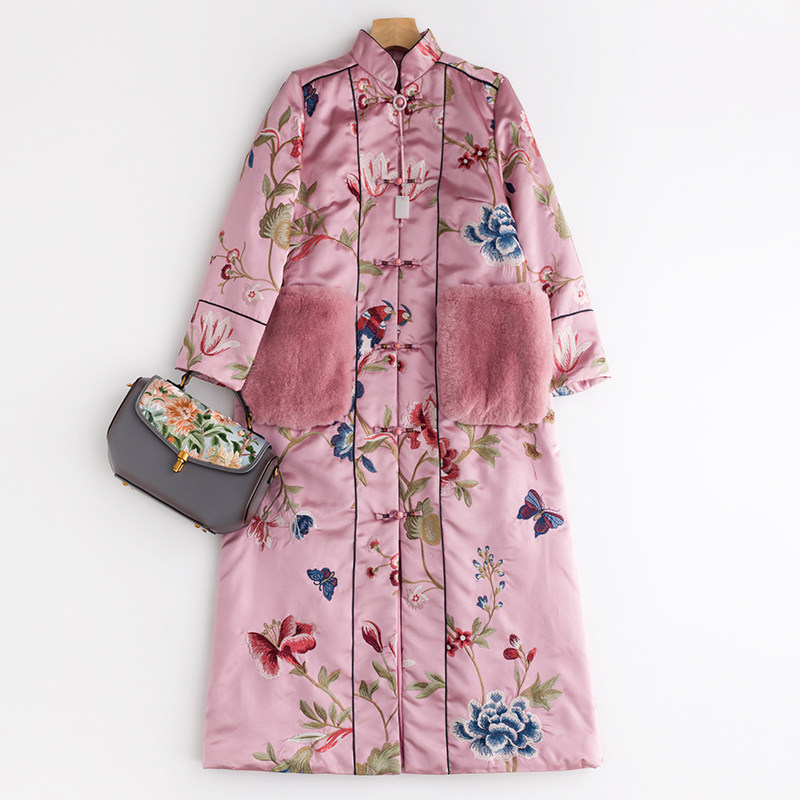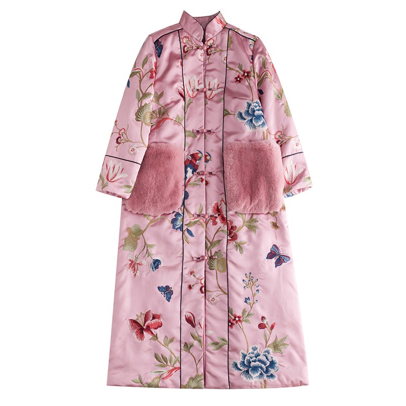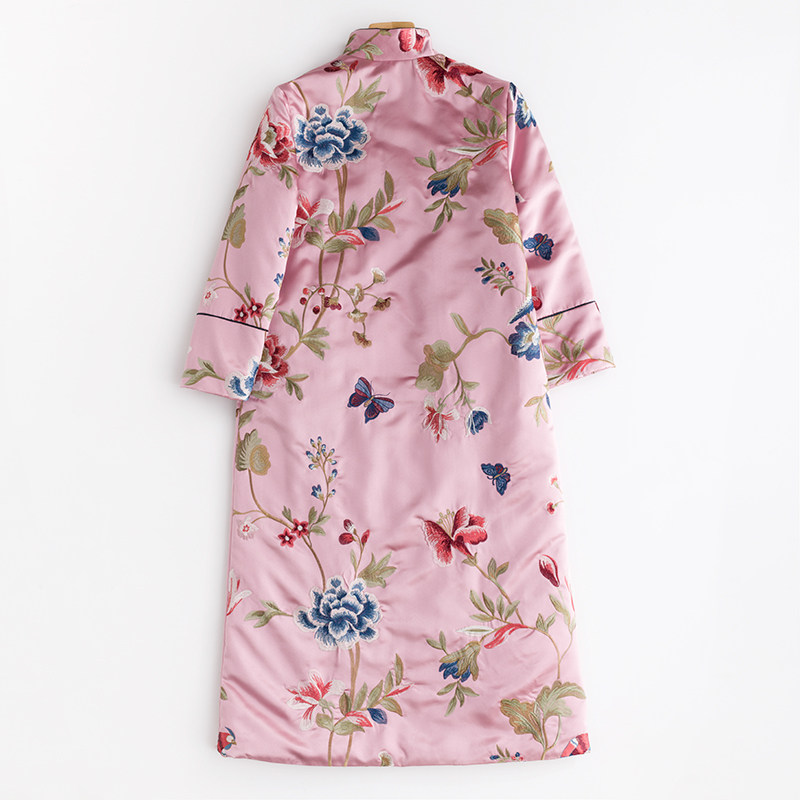 Демисезонное элитное ретро длинное ципао, хлопковая куртка, с вышивкой