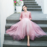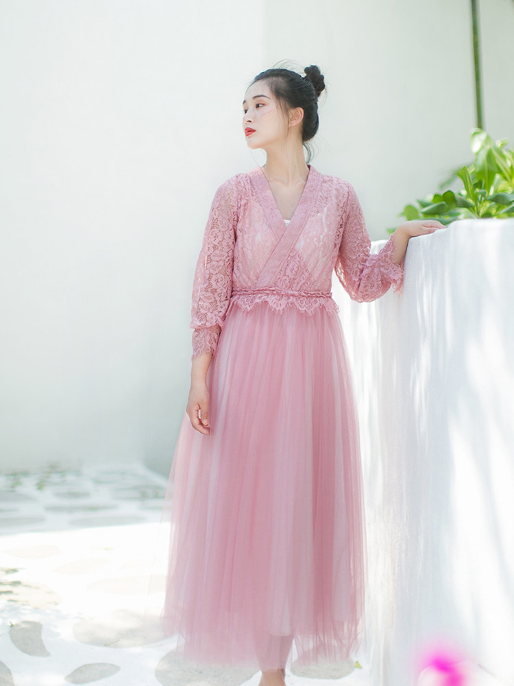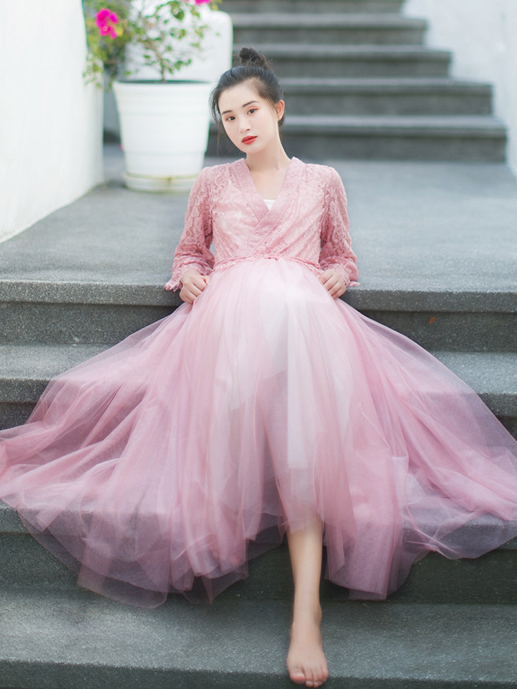 Летнее ретро ханьфу, кружевная длинная юбка, платье, сезон 2021, V-образный вырез, из фатина