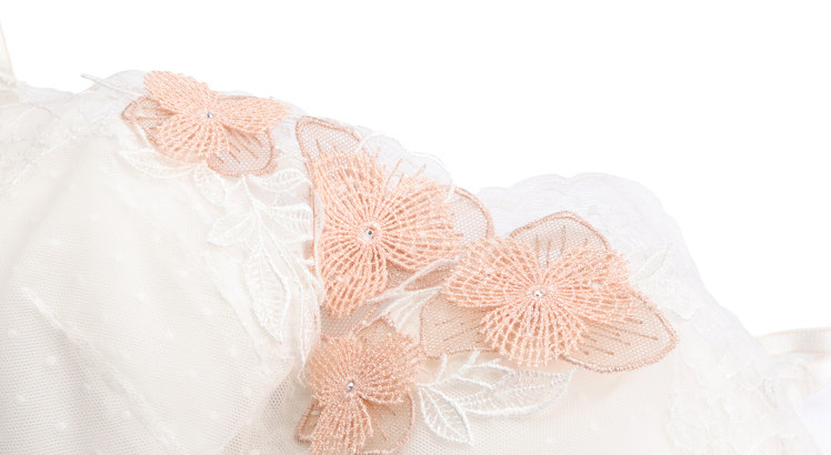 Сетка Wave Dot заполняет лапшу чашки в сочетании с кружевными кружевами и многослойными цветами вышивки, носящих красивые и элегантные.