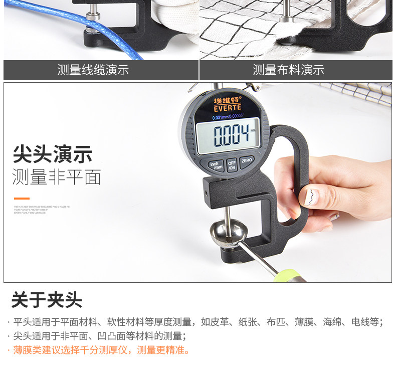 Измерительный прибор измеряет толщину и высокое число точности, бумажная пленка стальная пластина Толстая точность прибора 0,001 Опознанная головка плоская