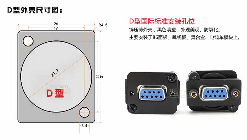 Описание продукта: DB9 последовательный порт 232 стыковочные розетки можно заблокировать вперед и назад, D -форма (граница: 26*31 мм)