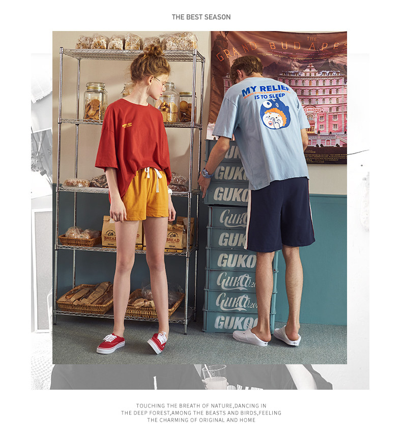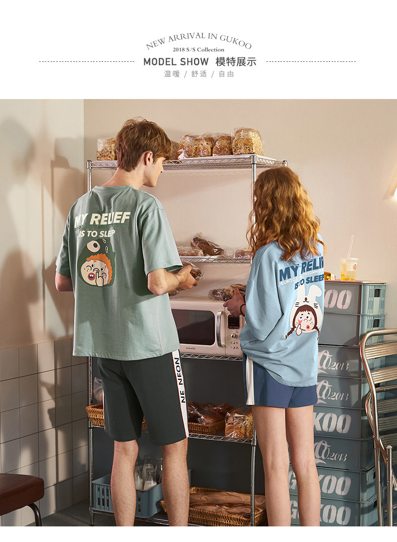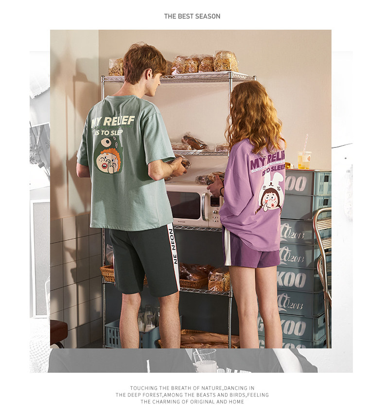 Tide, летняя хлопковая милая тонкая пижама для влюбленных, в корейском стиле, популярно в интернете, короткий рукав
