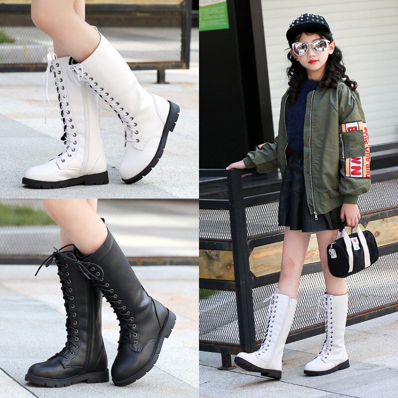 Martens, детские белые демисезонные высокие сапоги, ботинки