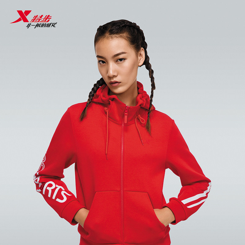 Xtep, весенняя спортивная трикотажная куртка с капюшоном, осенняя