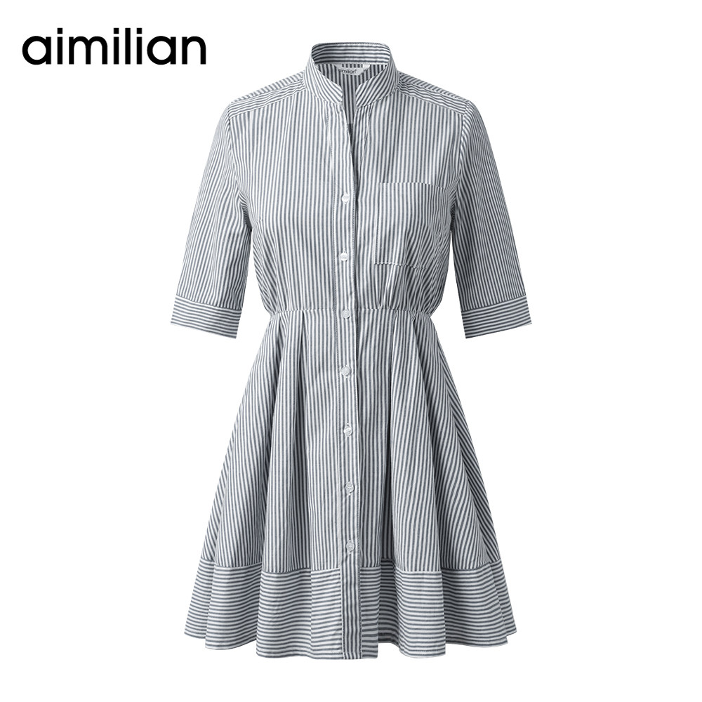 艾米恋 Рубашка, хлопковая юбка, мини-юбка, платье с рукавами, высокая талия, А-силуэт