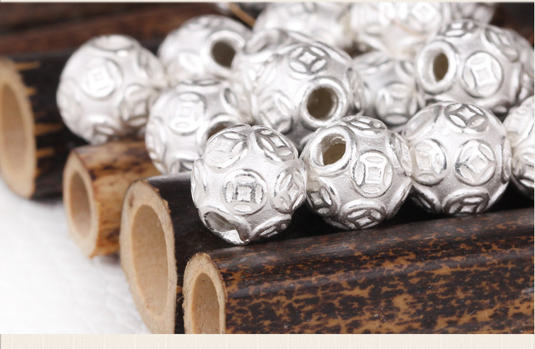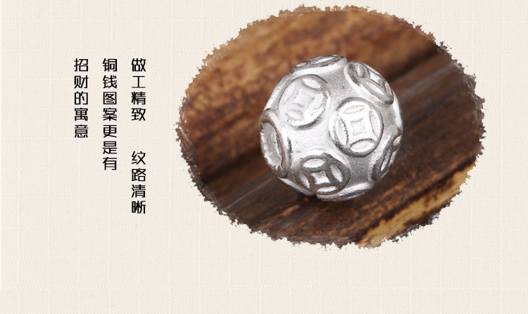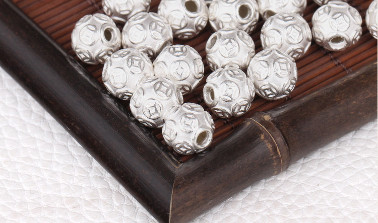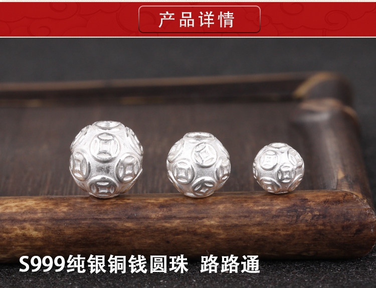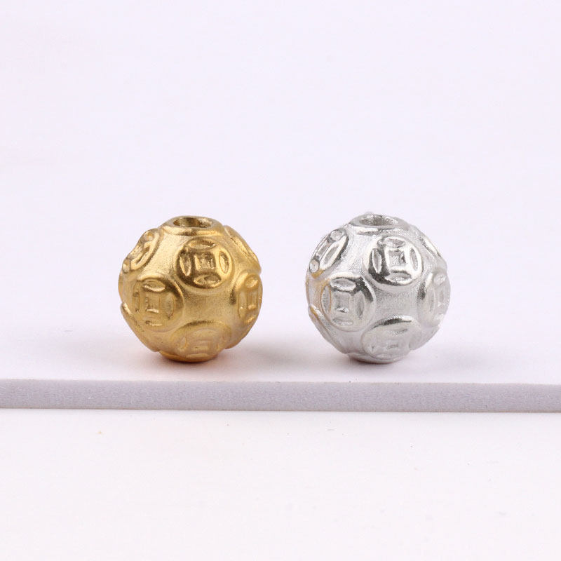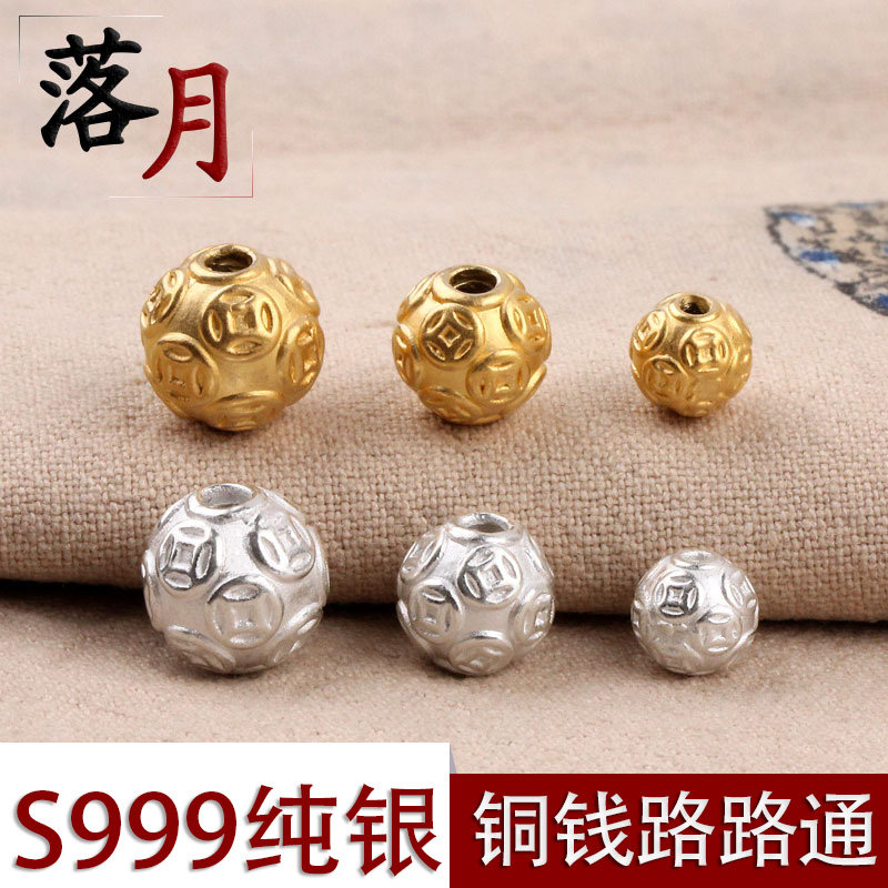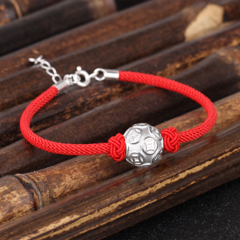 S999, медное украшение-шарик, браслет с одной бусиной, золотые бусины, плетеный оберег на день рождения, аксессуары, серебро 999 пробы, 3D, DIY