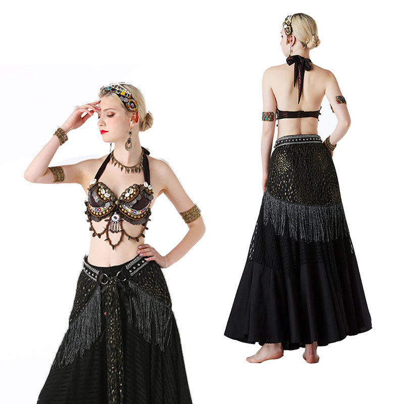 - Бордовый бюстгальтер/черная юбка/черный набедренный шарф