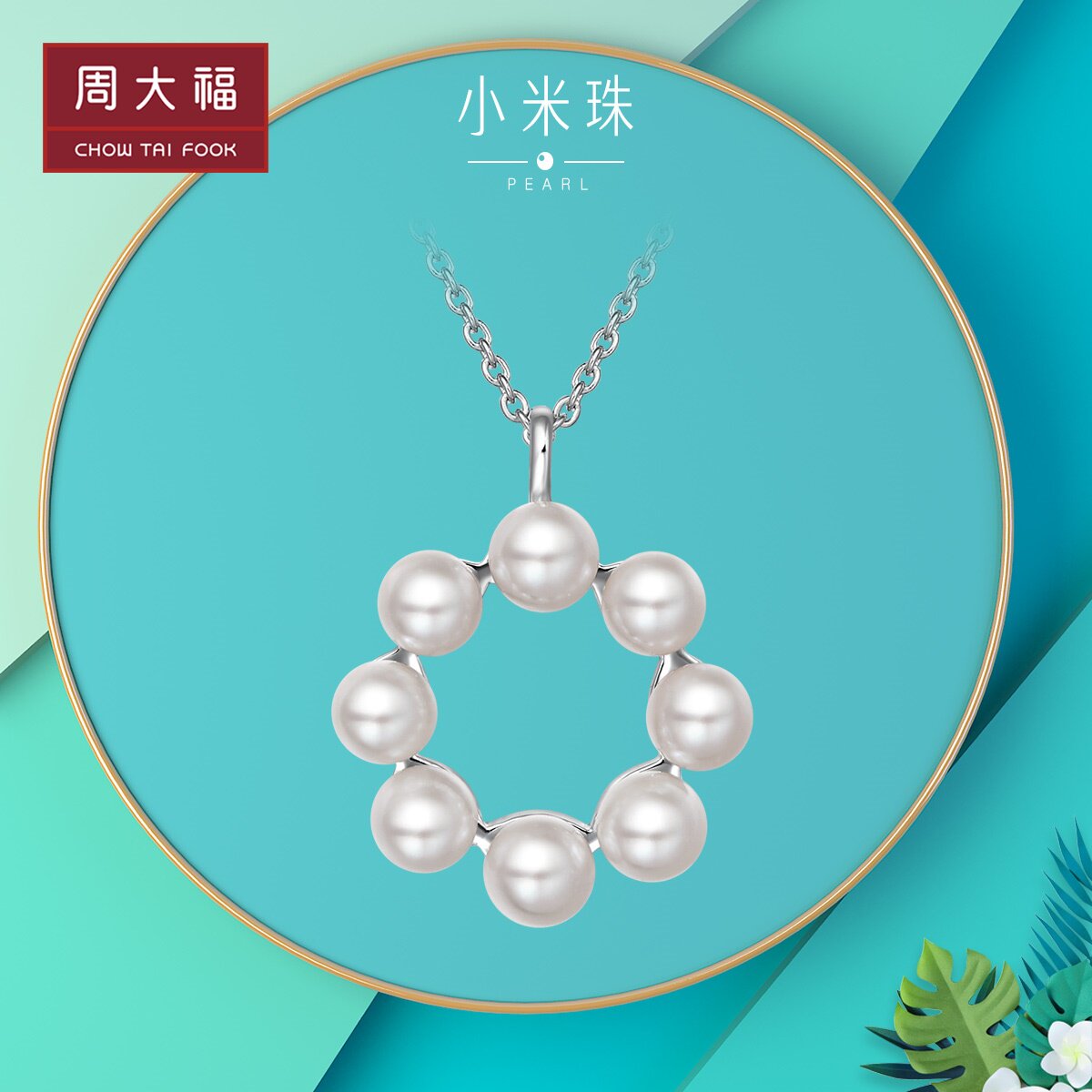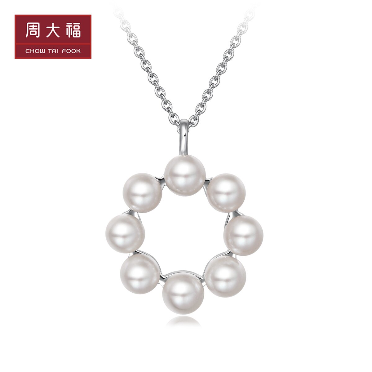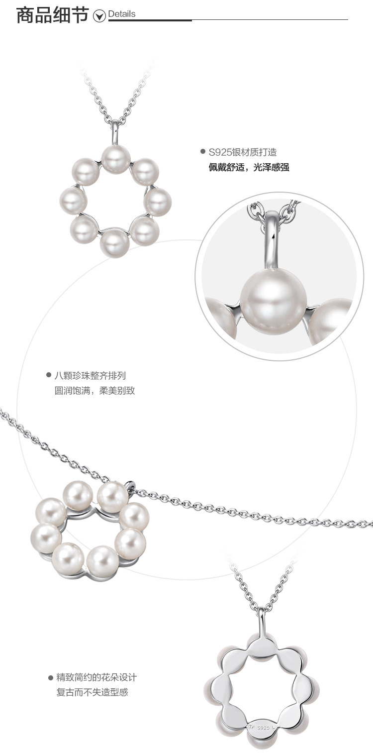 周大福 Ювелирное украшение, ожерелье из жемчуга, подвеска, простой и элегантный дизайн, серебро 925 пробы
