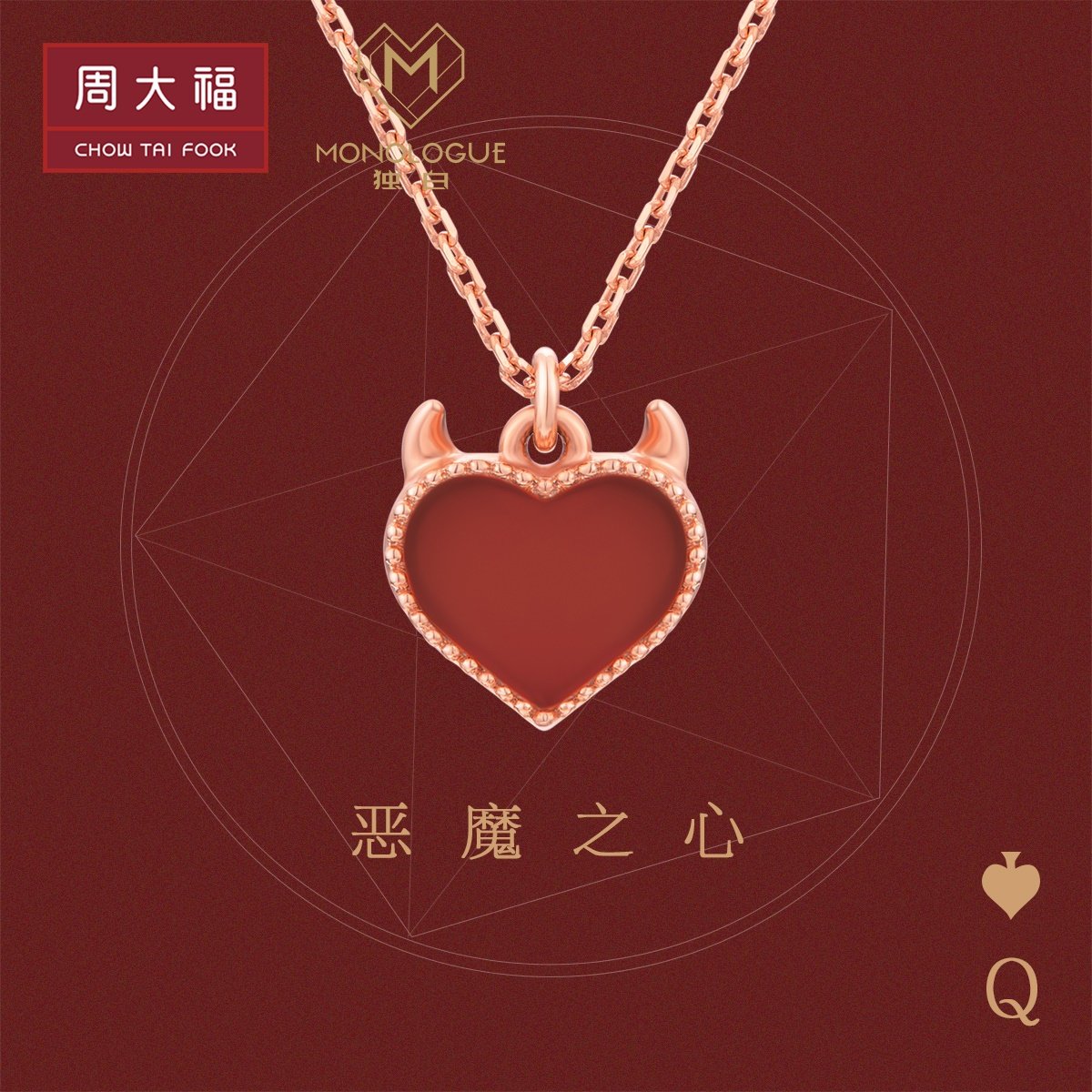 周大福 Монолог монолог демон Сердце 18K Золото Красное Халцедонии Подвеска MV41 MV41