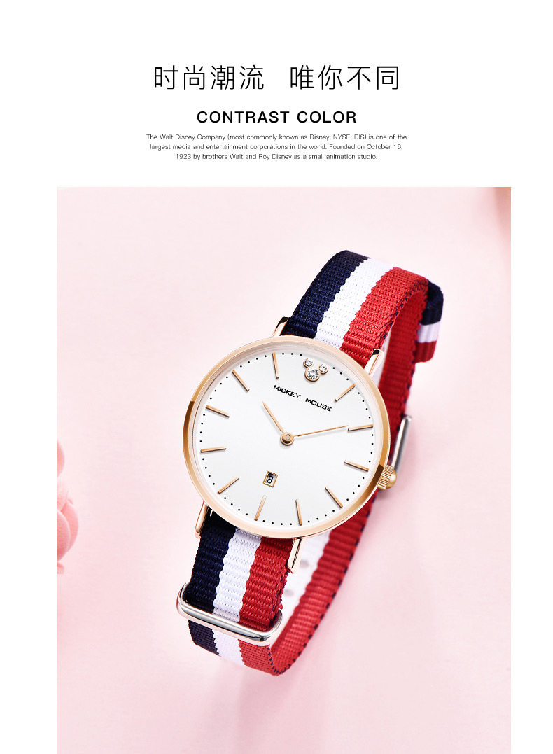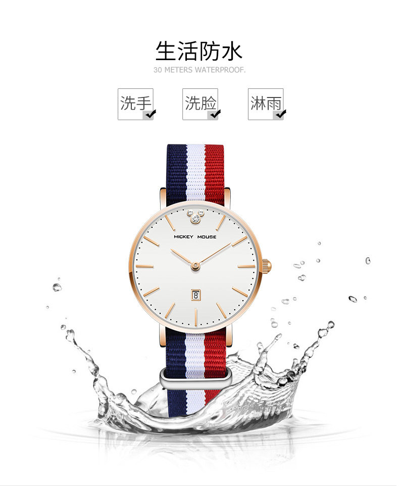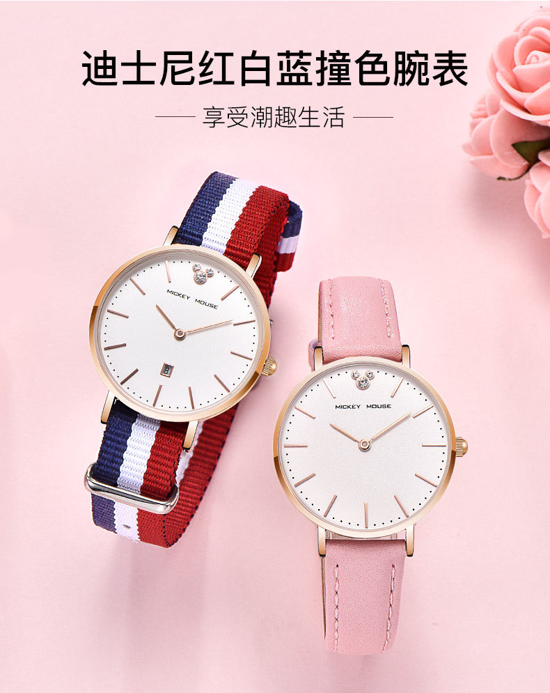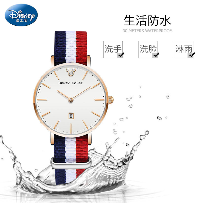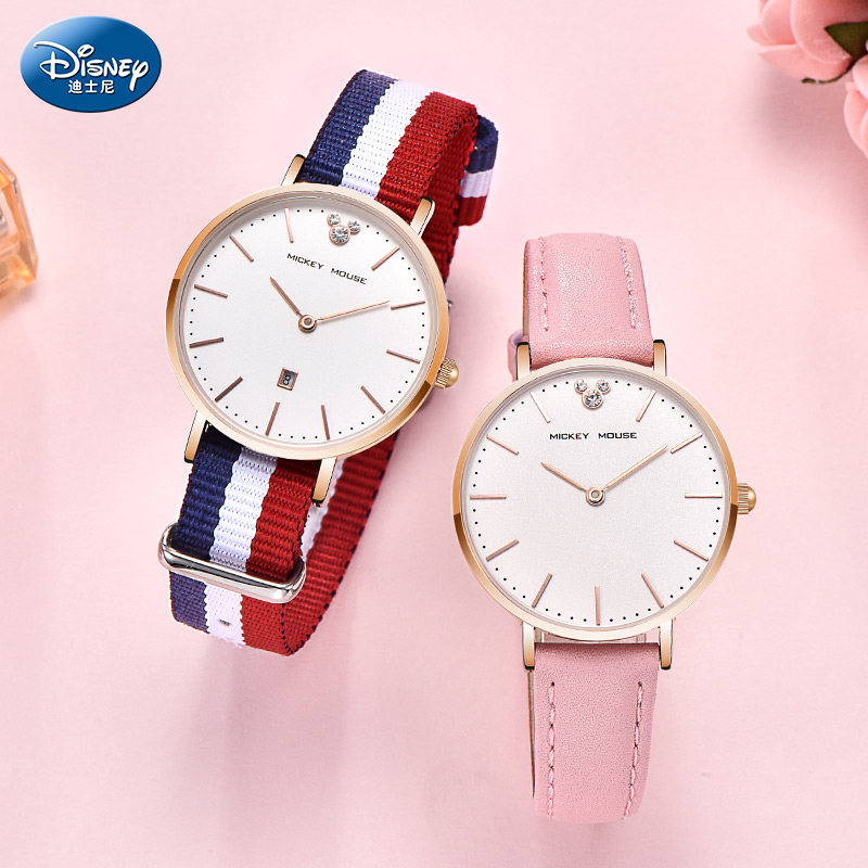 Дисней, брендовые водонепроницаемые часы, простой и элегантный дизайн, для средней школы, подходит для подростков