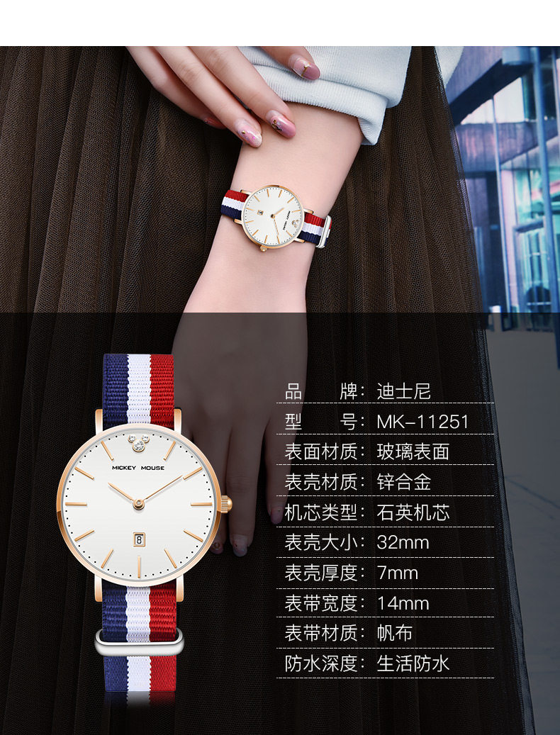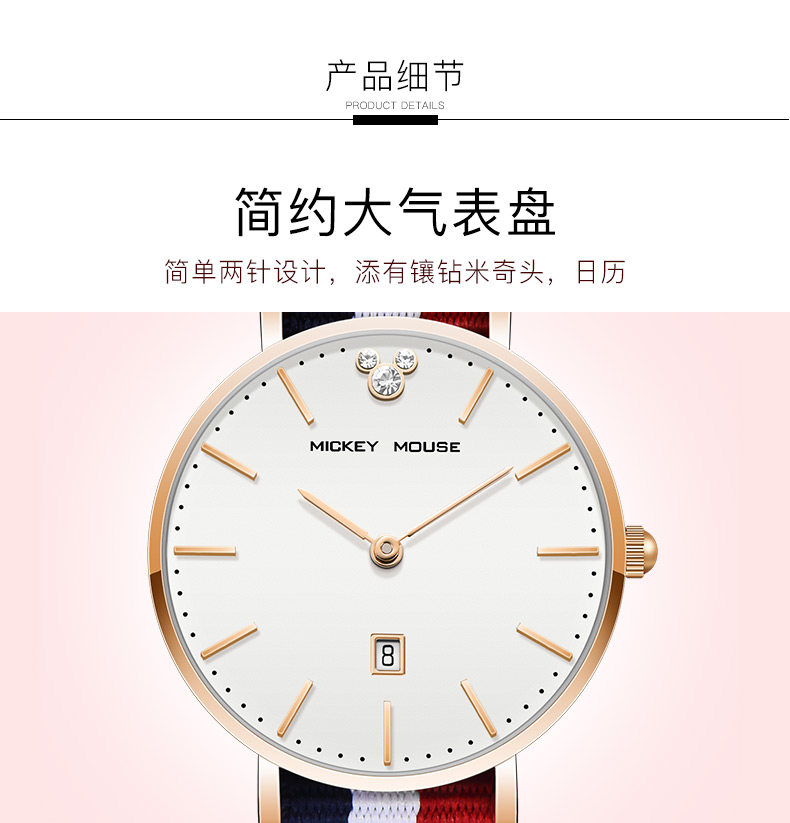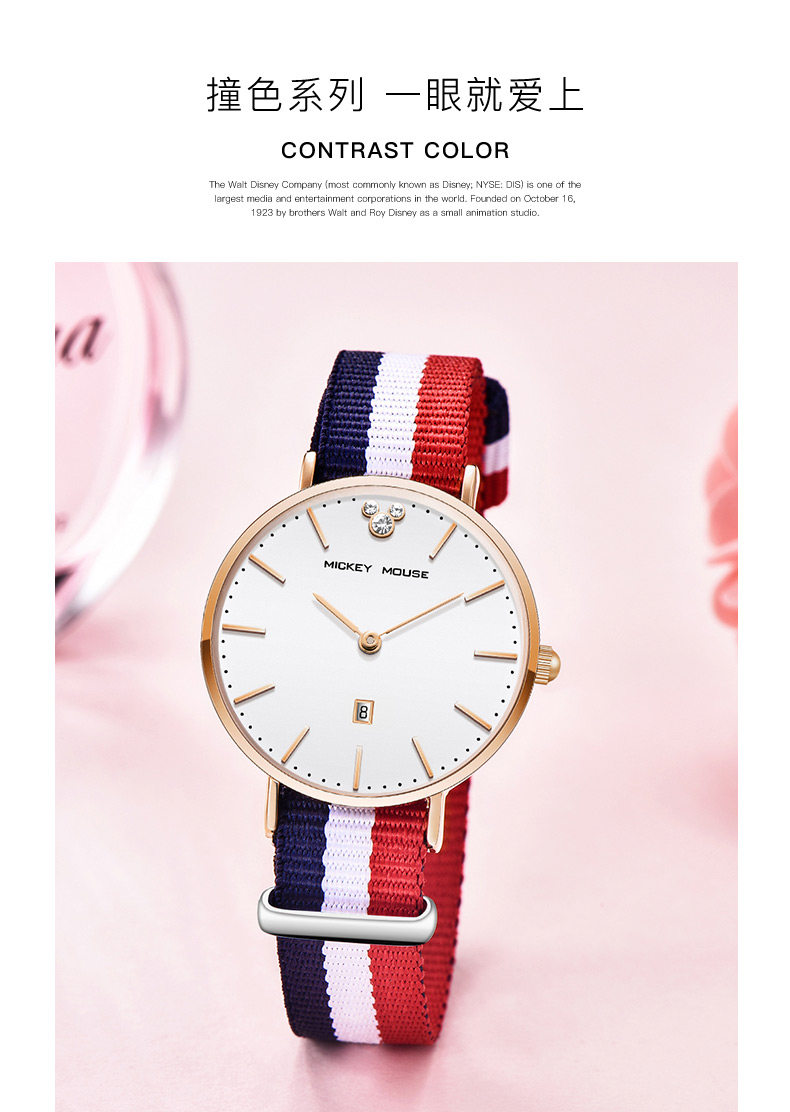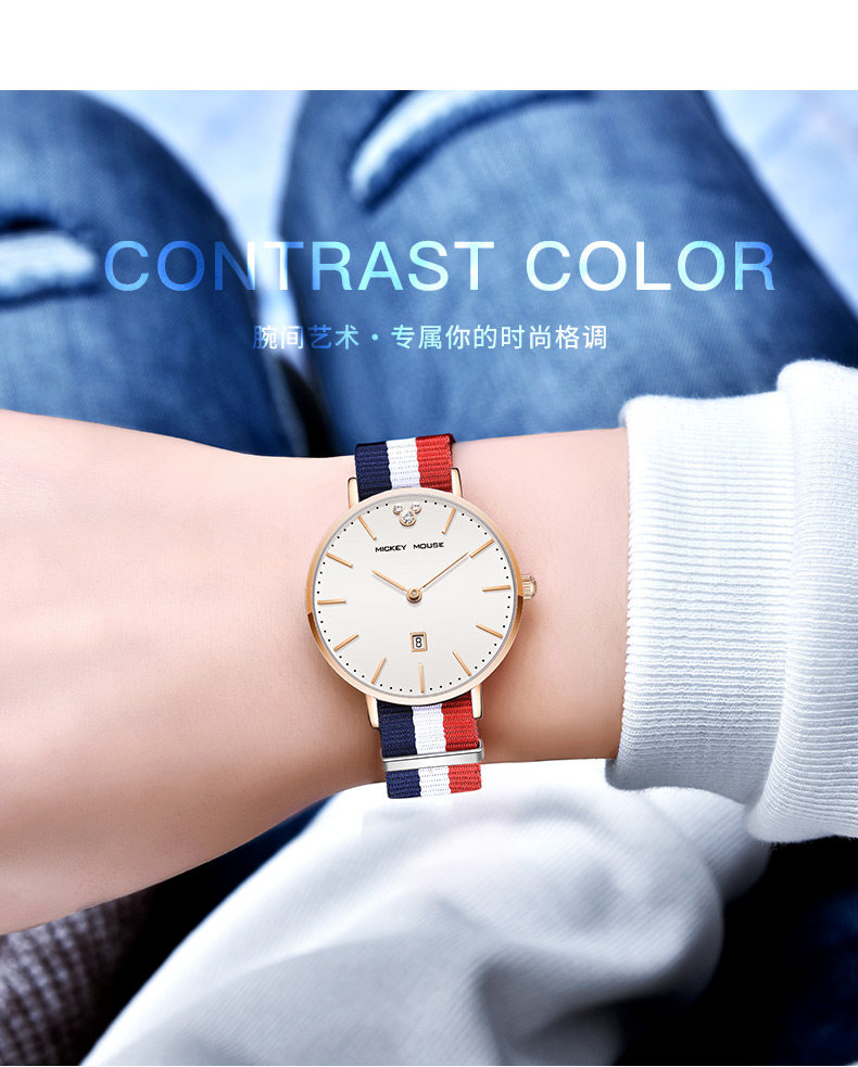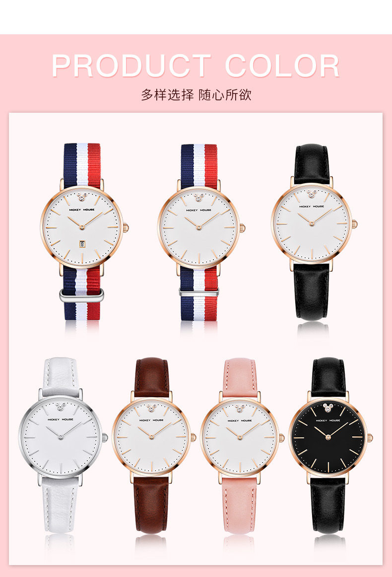 Дисней, брендовые водонепроницаемые часы, простой и элегантный дизайн, для средней школы, подходит для подростков