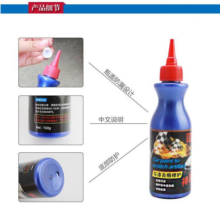 [Как использовать]: Используйте соответствующее количество этого продукта с губкой в течение 3-5 минут на царапине, пока царапины не исчезнут;