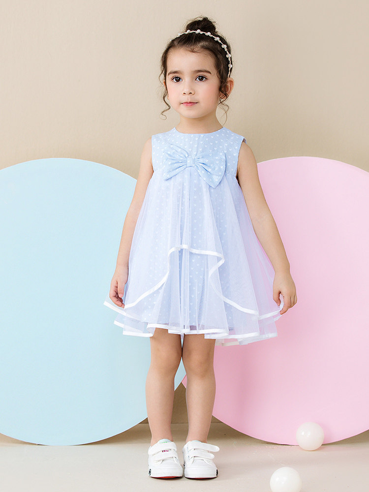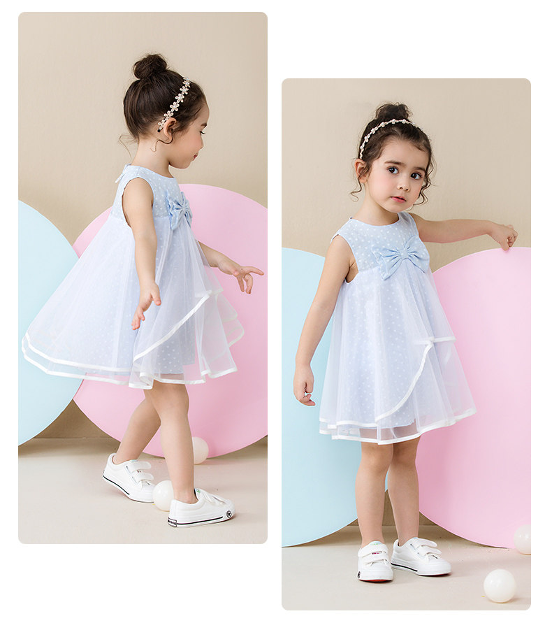 Летнее платье, детская юбка, тонкий наряд маленькой принцессы, в западном стиле, в корейском стиле, короткий рукав