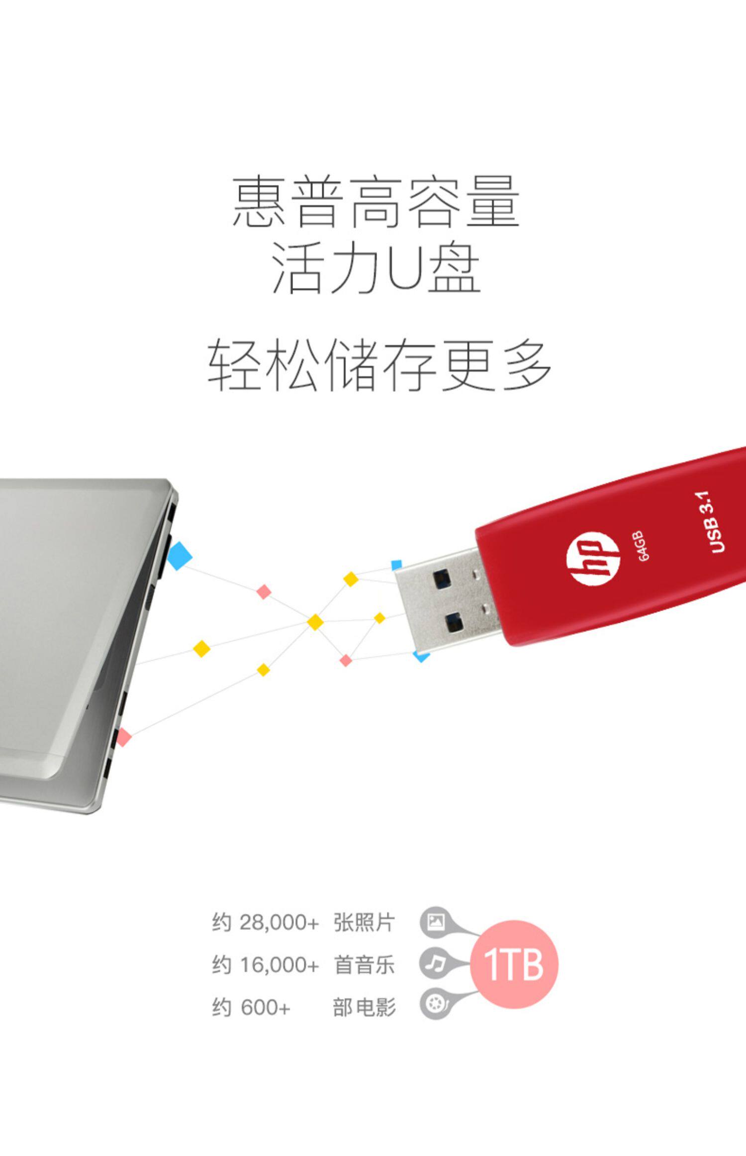 HP/惠普 Вместительный и большой высокоскоростной USB-флеш-накопитель, милый ноутбук для школьников, 64G, 64gb
