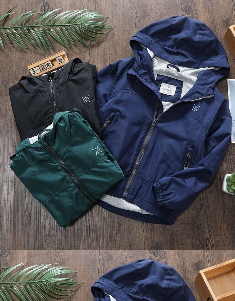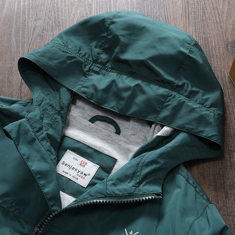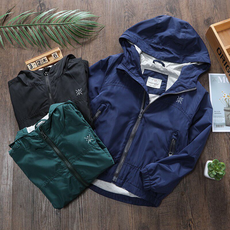 Детская тонкая летняя одежда, ветрозащитный плащ для мальчиков, куртка с капюшоном с молнией, детская одежда, подходит для подростков