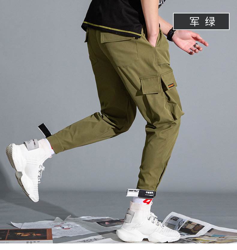 Осенние демисезонные трендовые штаны на липучке, повседневные брюки, в корейском стиле, оверсайз