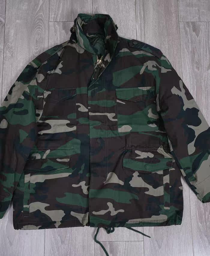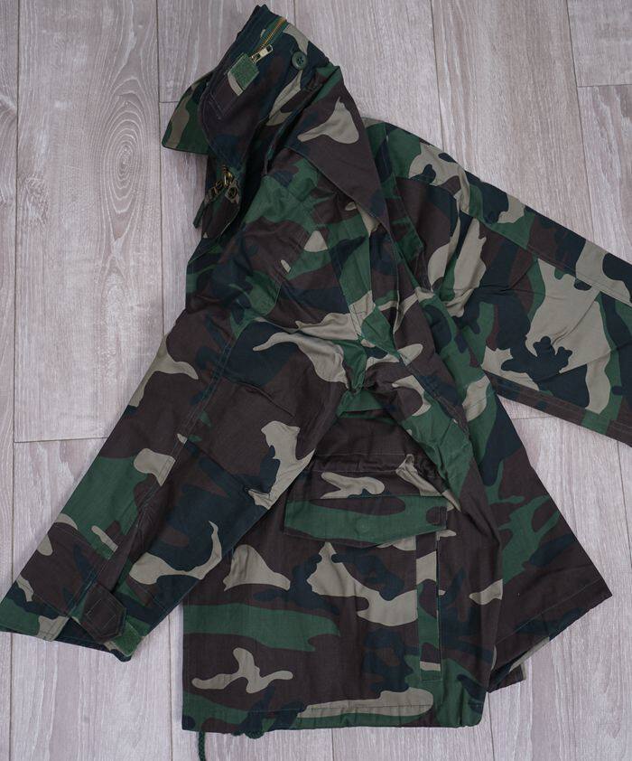 Классический американский вариант полевой ветровки М65. Ткань ветронепроницаемая, водонепроницаемая, износостойкая и не мнется. Рукав имеет подковообразную форму, которую можно расширять и укорачивать с помощью липучки. У него классические погоны, цельномедные молнии, кнопки на груди и карманах, встроенный капюшон, и у всех есть внутренние желчные пузыри.