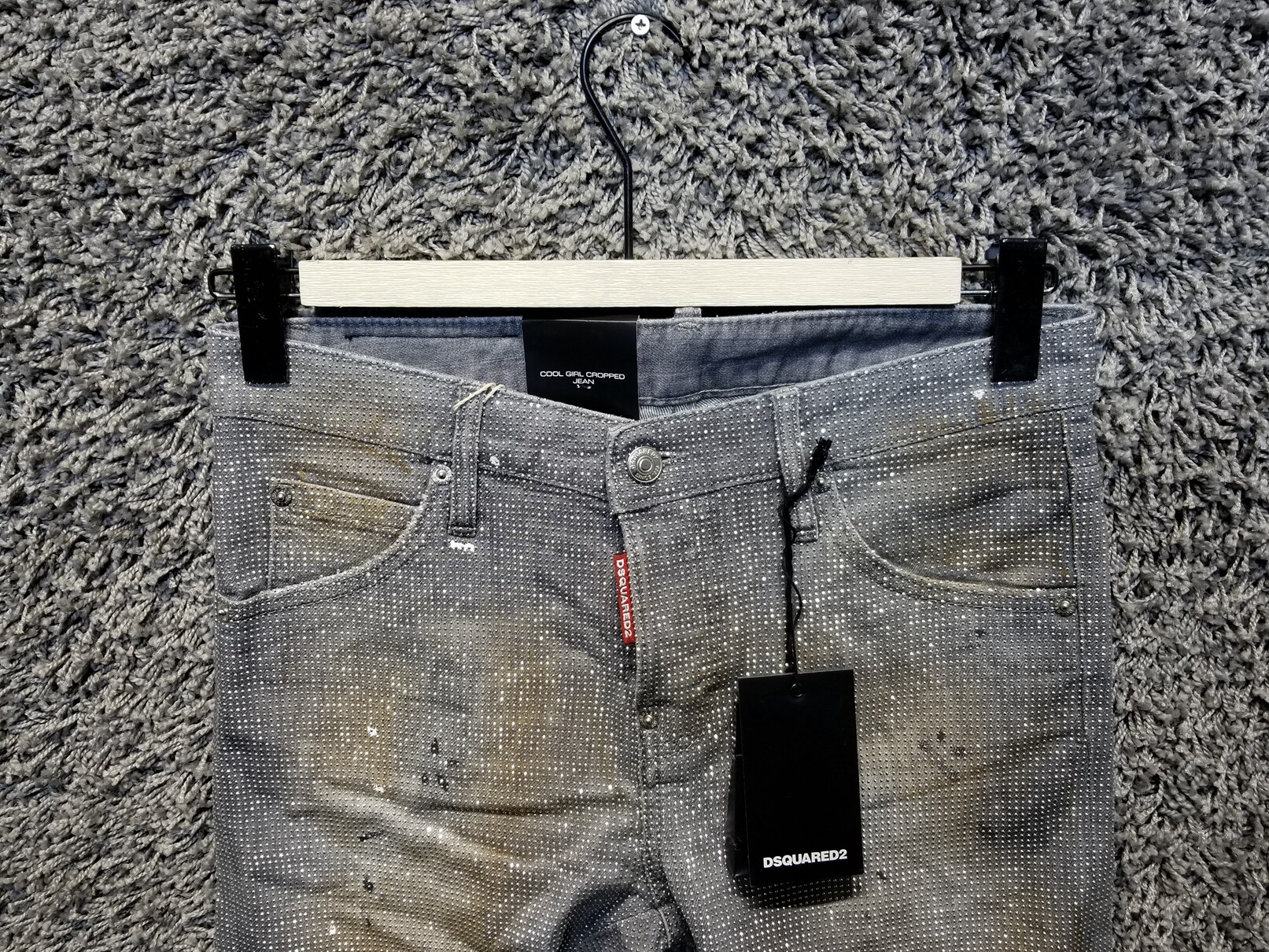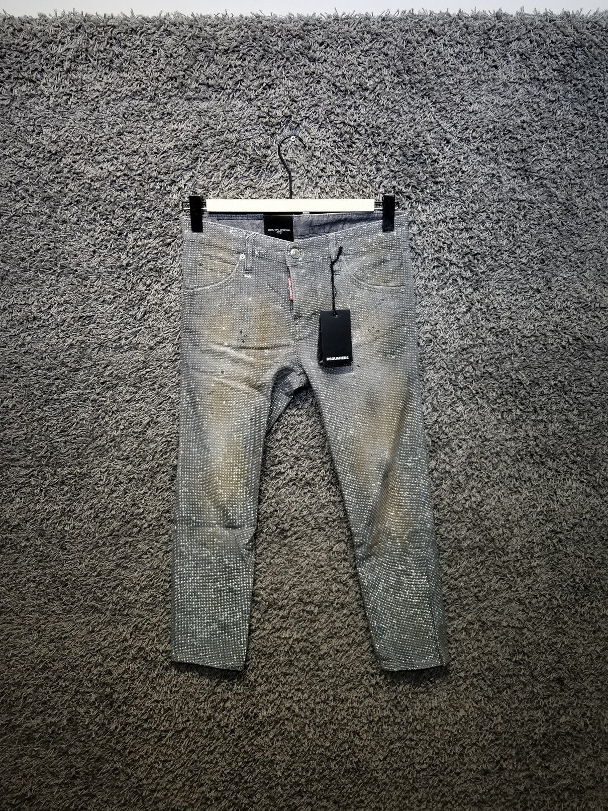 Дамы dsquared2 Cool Girl Whole Afinestone Splash Paint Грязная мытья эластичная 9 -точка джинсы S75LA0888