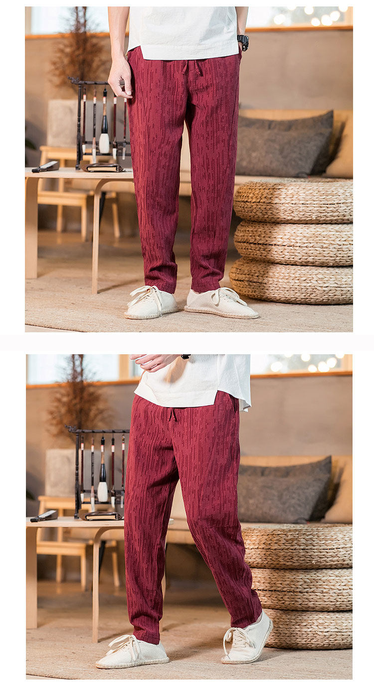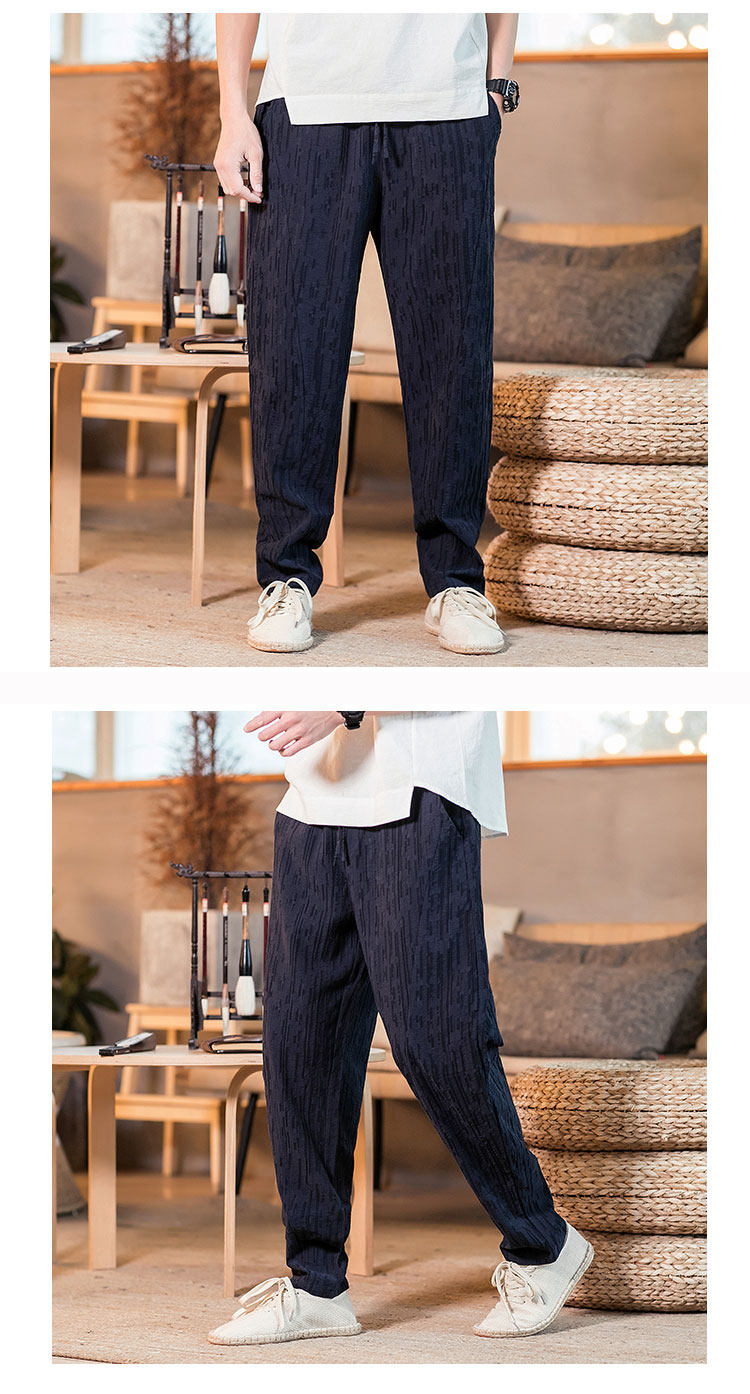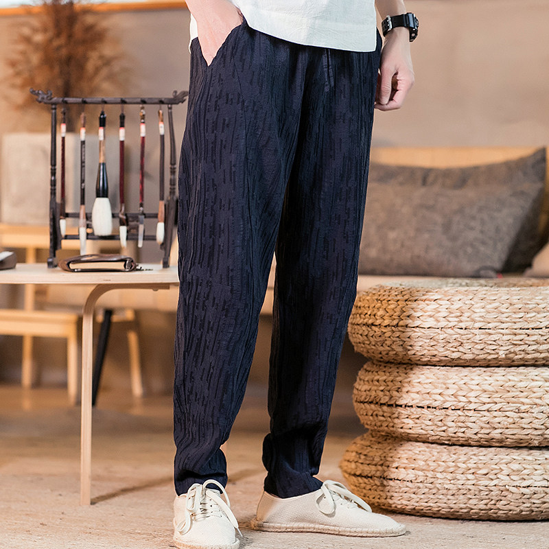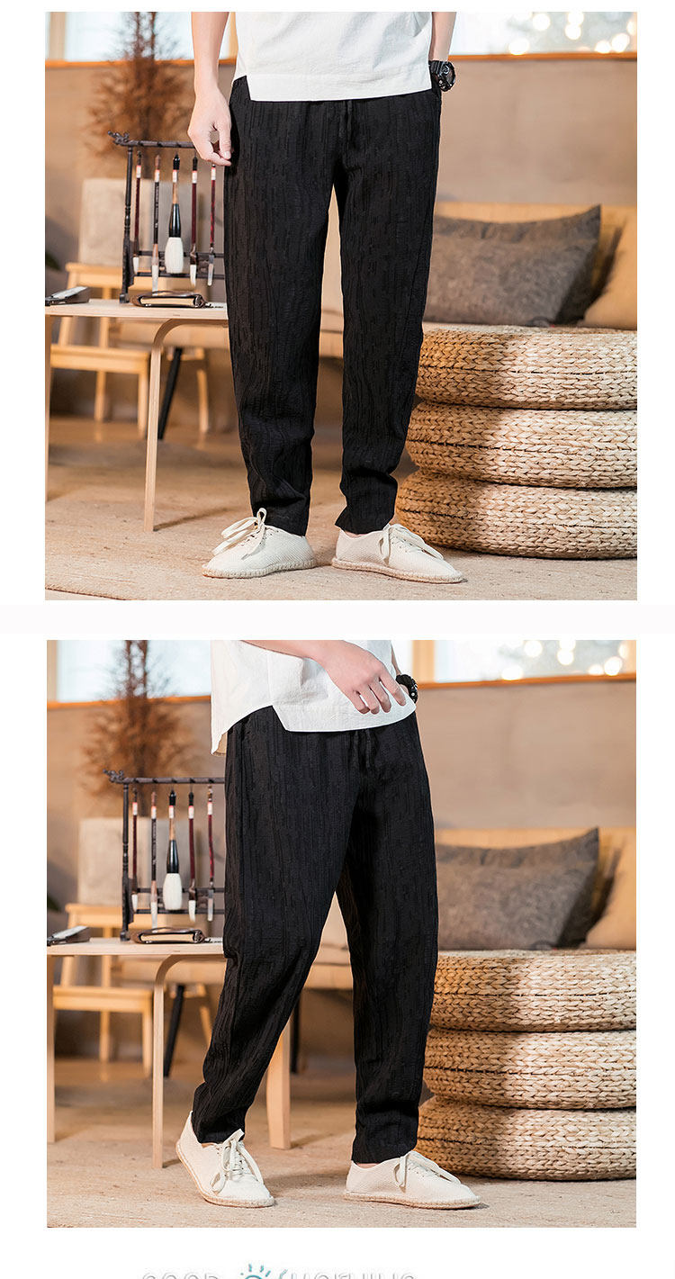 Демисезонные штаны, китайский стиль, свободный крой, из хлопка и льна, большой размер