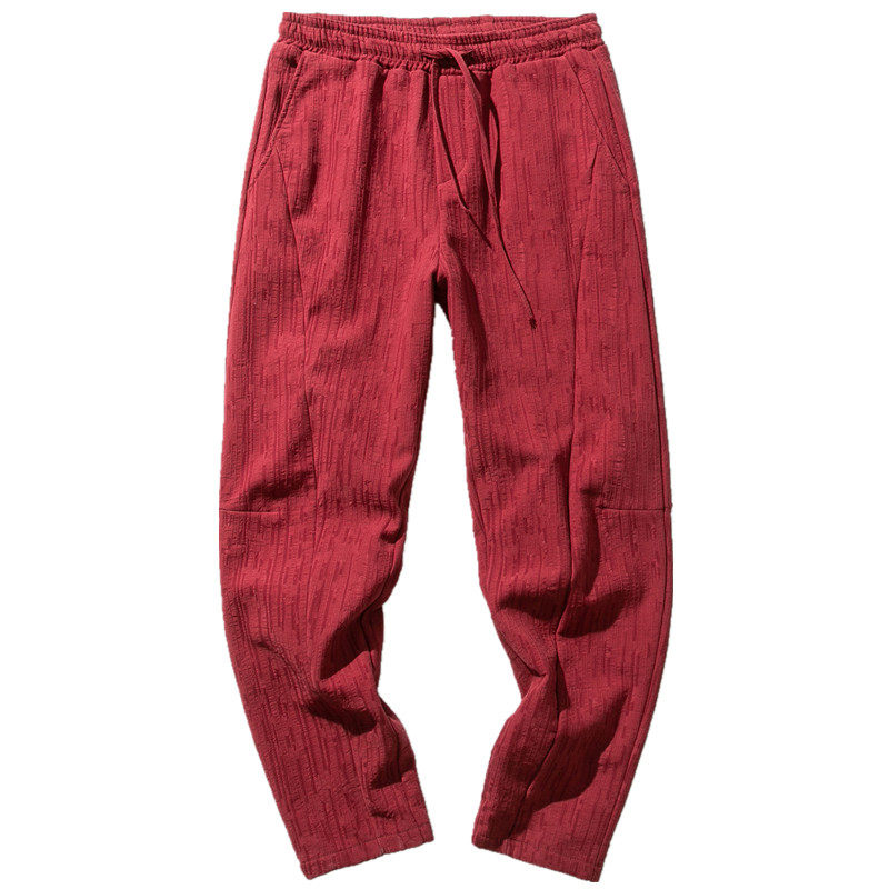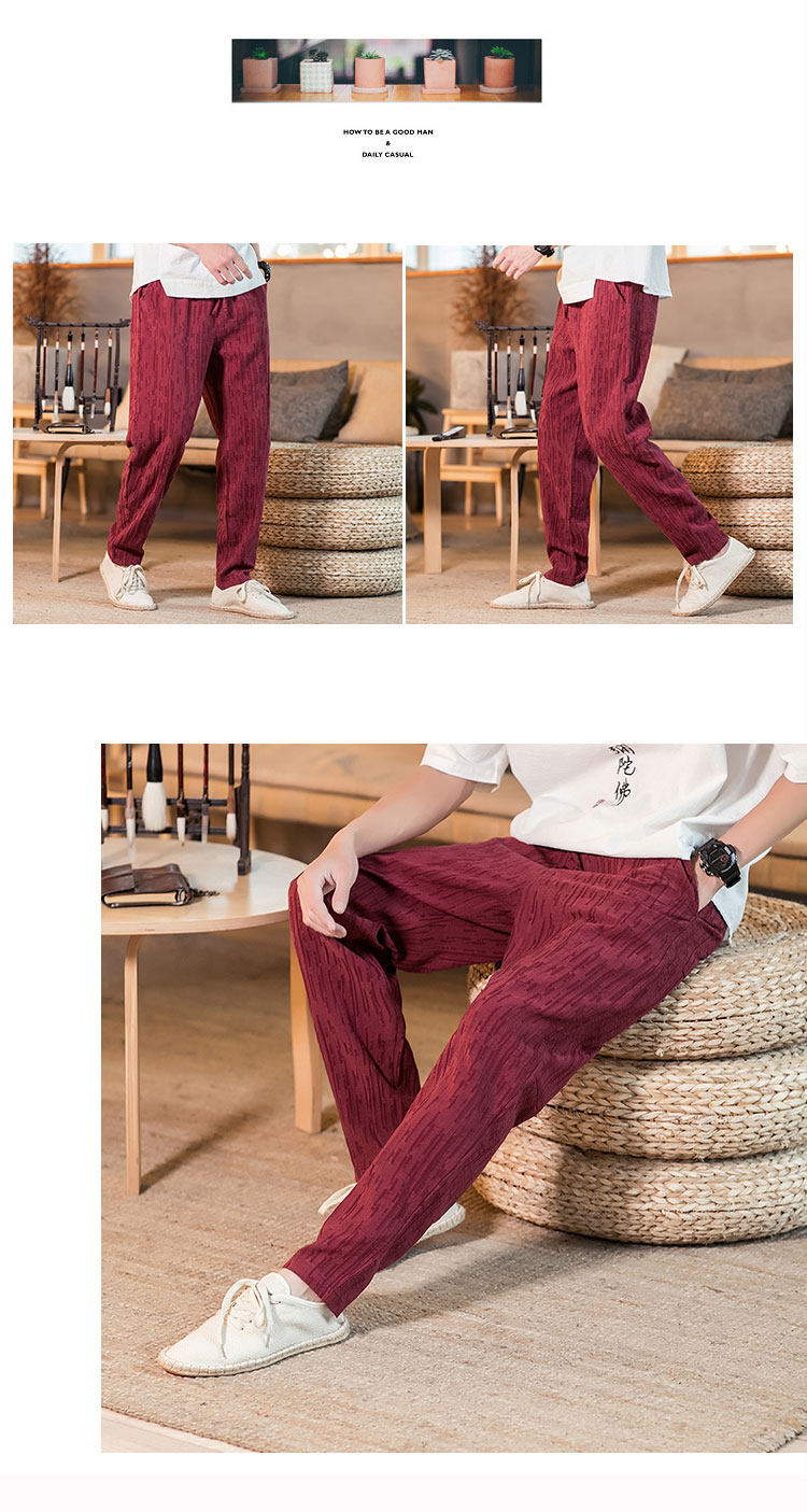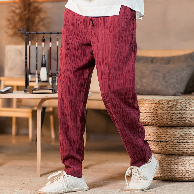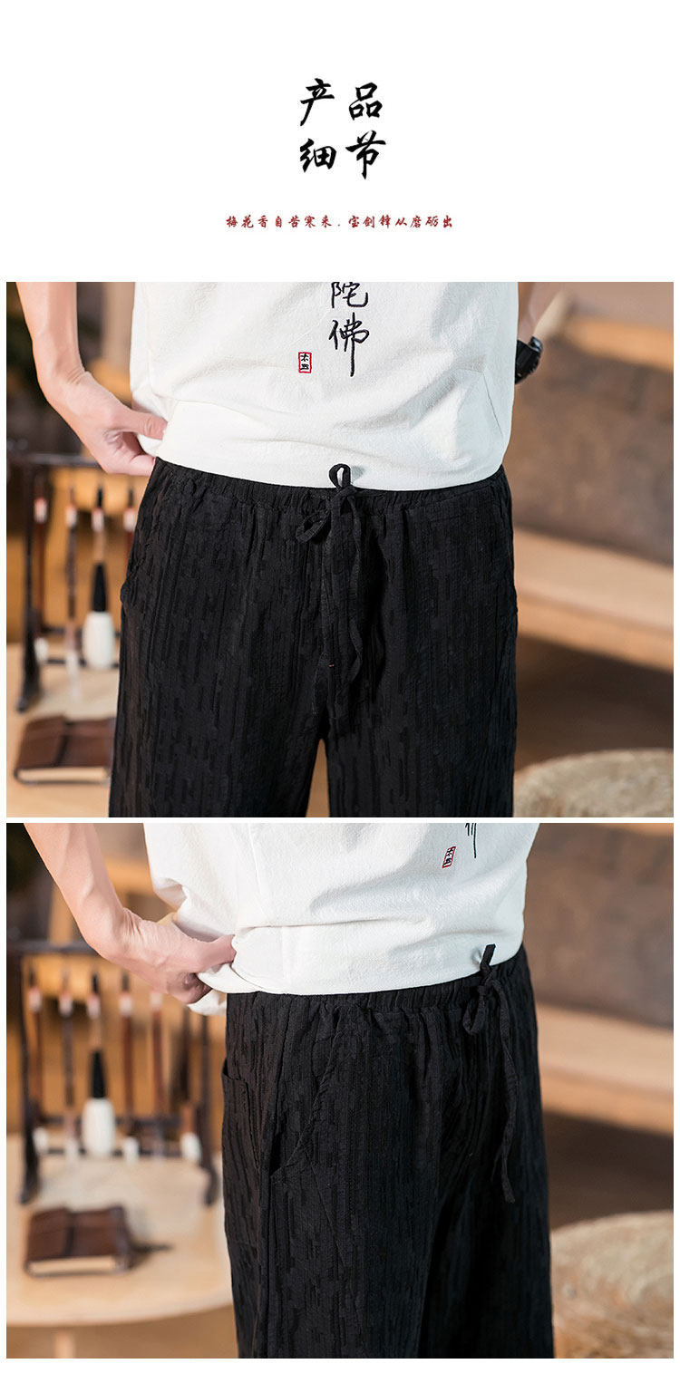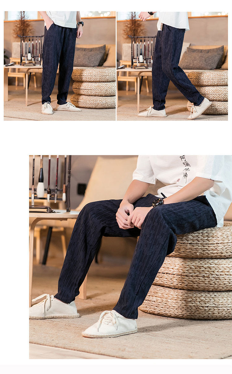 Демисезонные штаны, китайский стиль, свободный крой, из хлопка и льна, большой размер