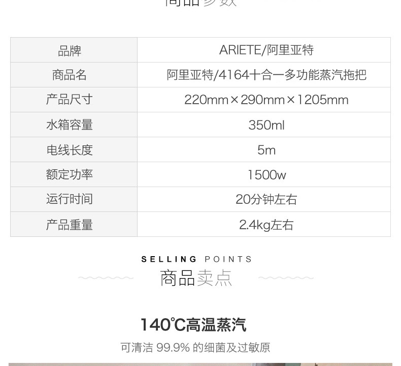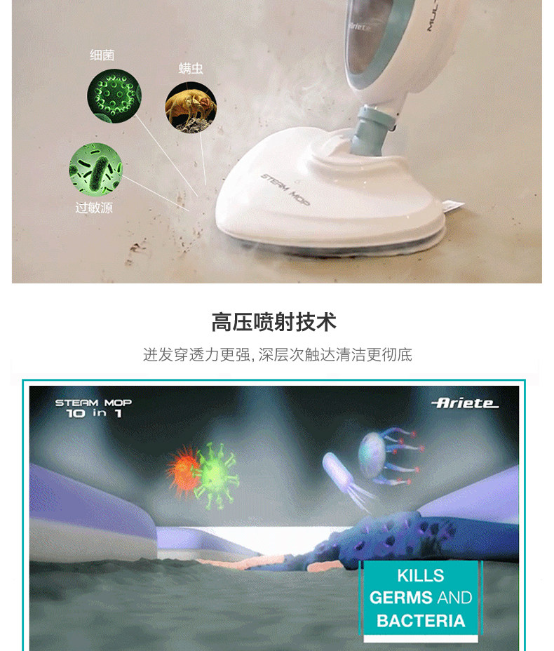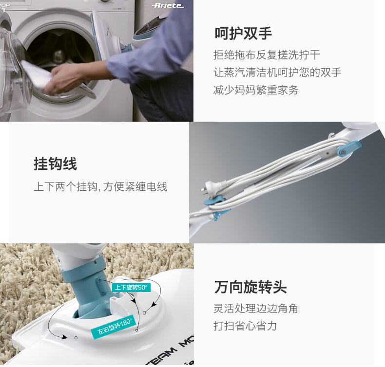 Ariete Alat 4164 Home -Temperatature Steam Mop Multifunctional Clean Motor Sireless