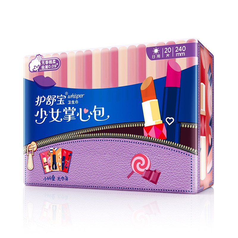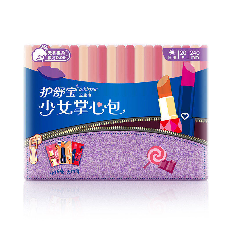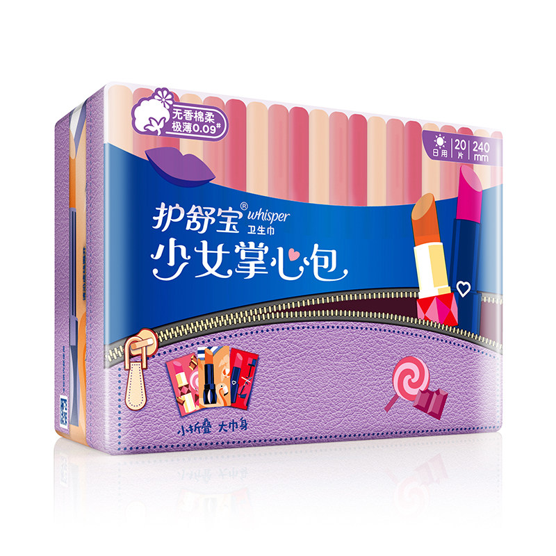 Hushubao Girl Palm Pack, хлопковые, мягкие, очень тонкие ежедневные гигиенические прокладки без запаха, 240 мм, 20 шт./