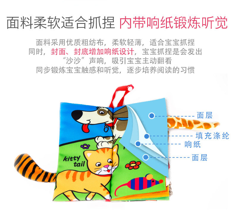 Трехмерная книга из ткани, интеллектуальная игрушка, 6-12 мес., 0-1-3 лет, раннее развитие, можно отрывать, можно грызть