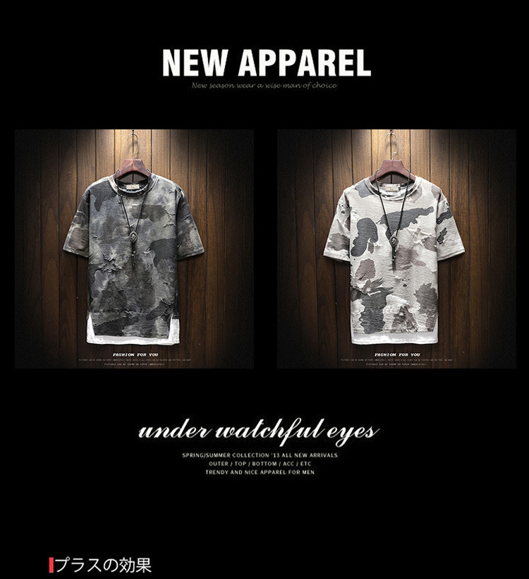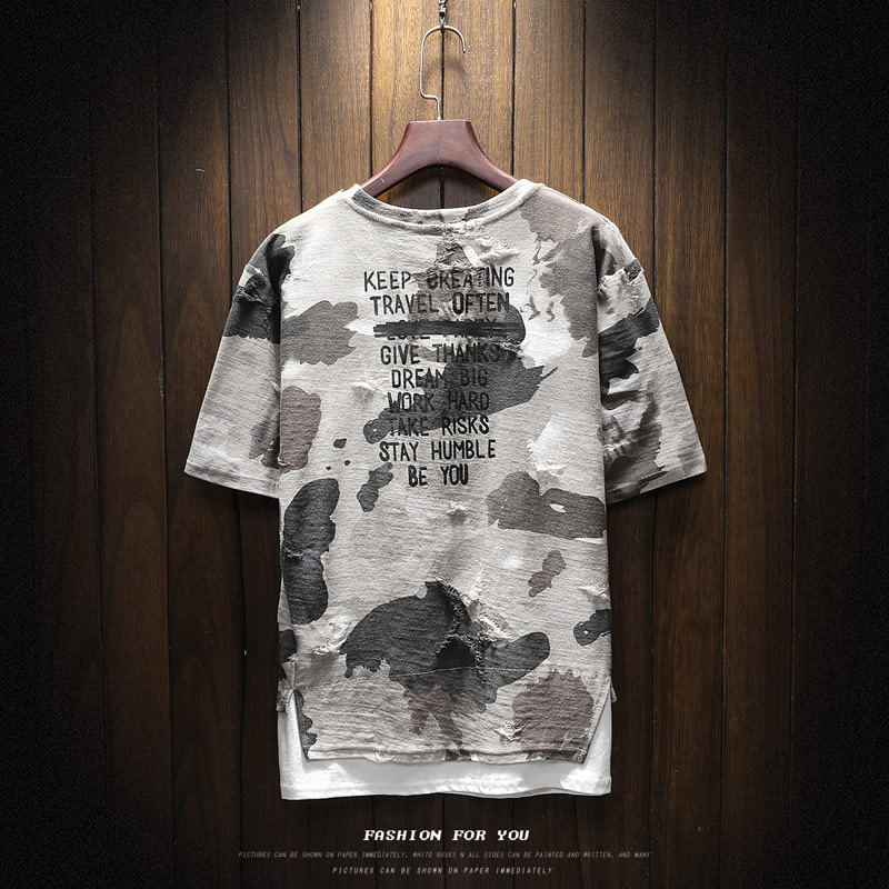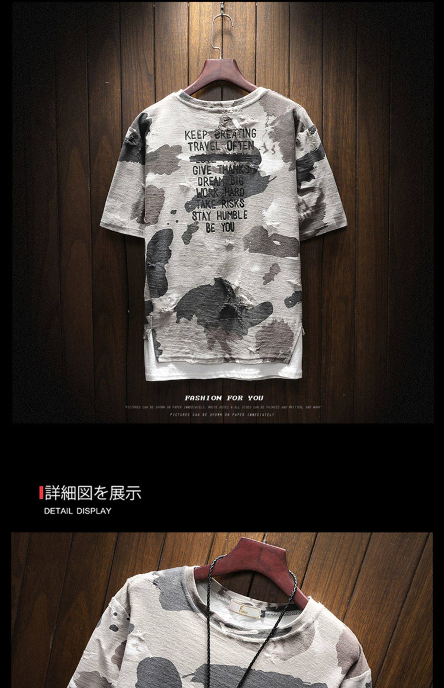 Летняя камуфляжная футболка с коротким рукавом, брендовый трендовый комплект, большой размер, в корейском стиле