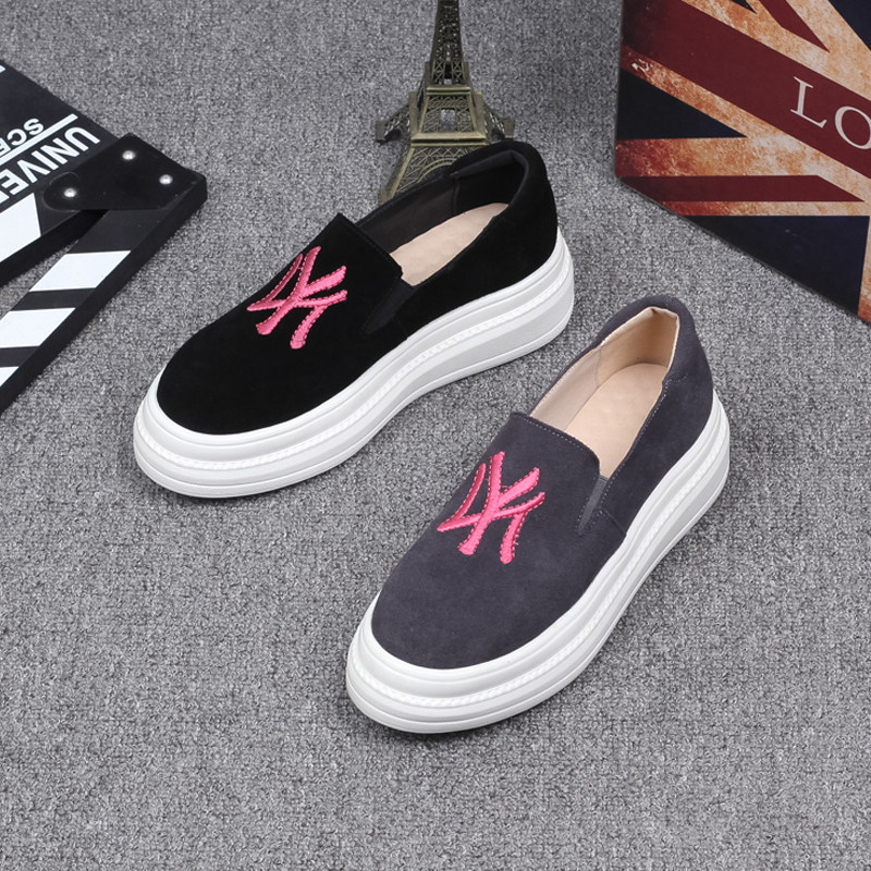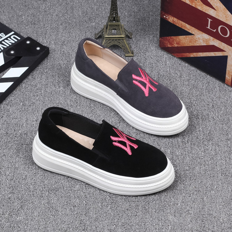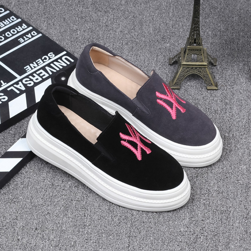 Лоферы, весенняя матовая обувь на платформе для отдыха, из натуральной кожи, с вышивкой