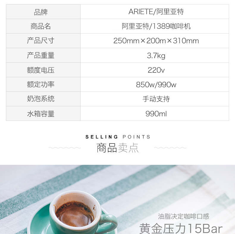 Ariete Ariete Army 1389 Retro Итальянская полуавтоматическая кофемашина защита от качества домохозяйства 1 год в год