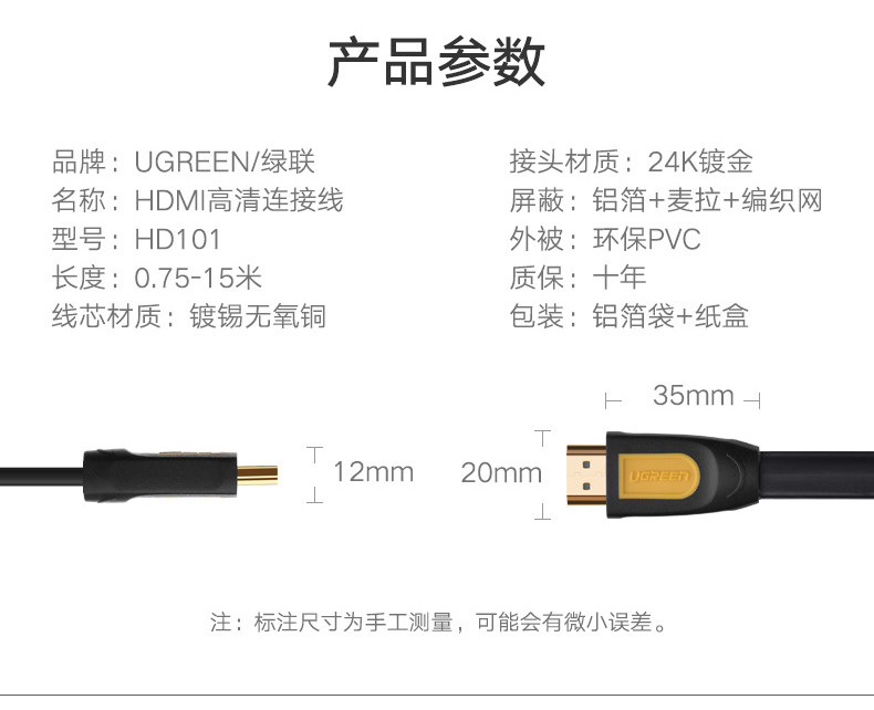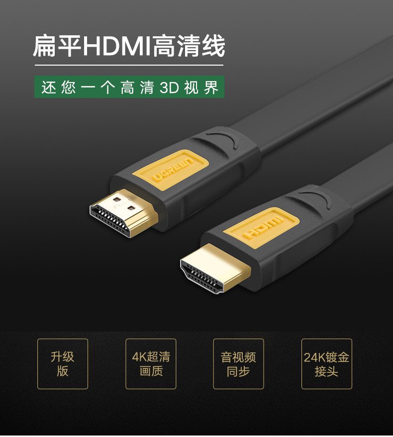 Ugreen Green Union HD101 Flat HDMI LINE 4K Computer TV Line Line HDMI Line 1,5 метра