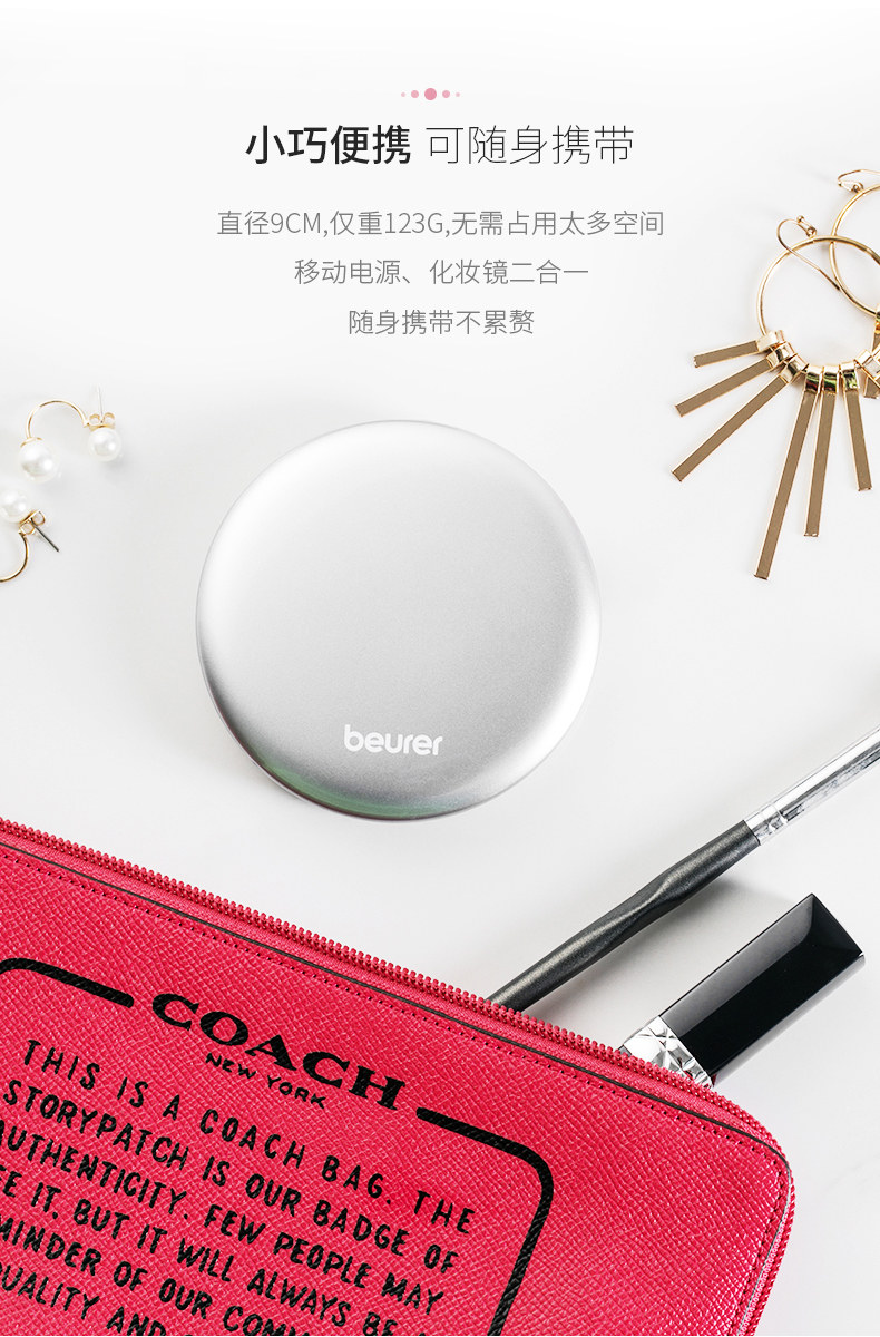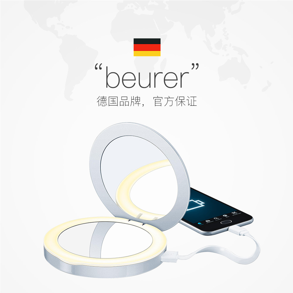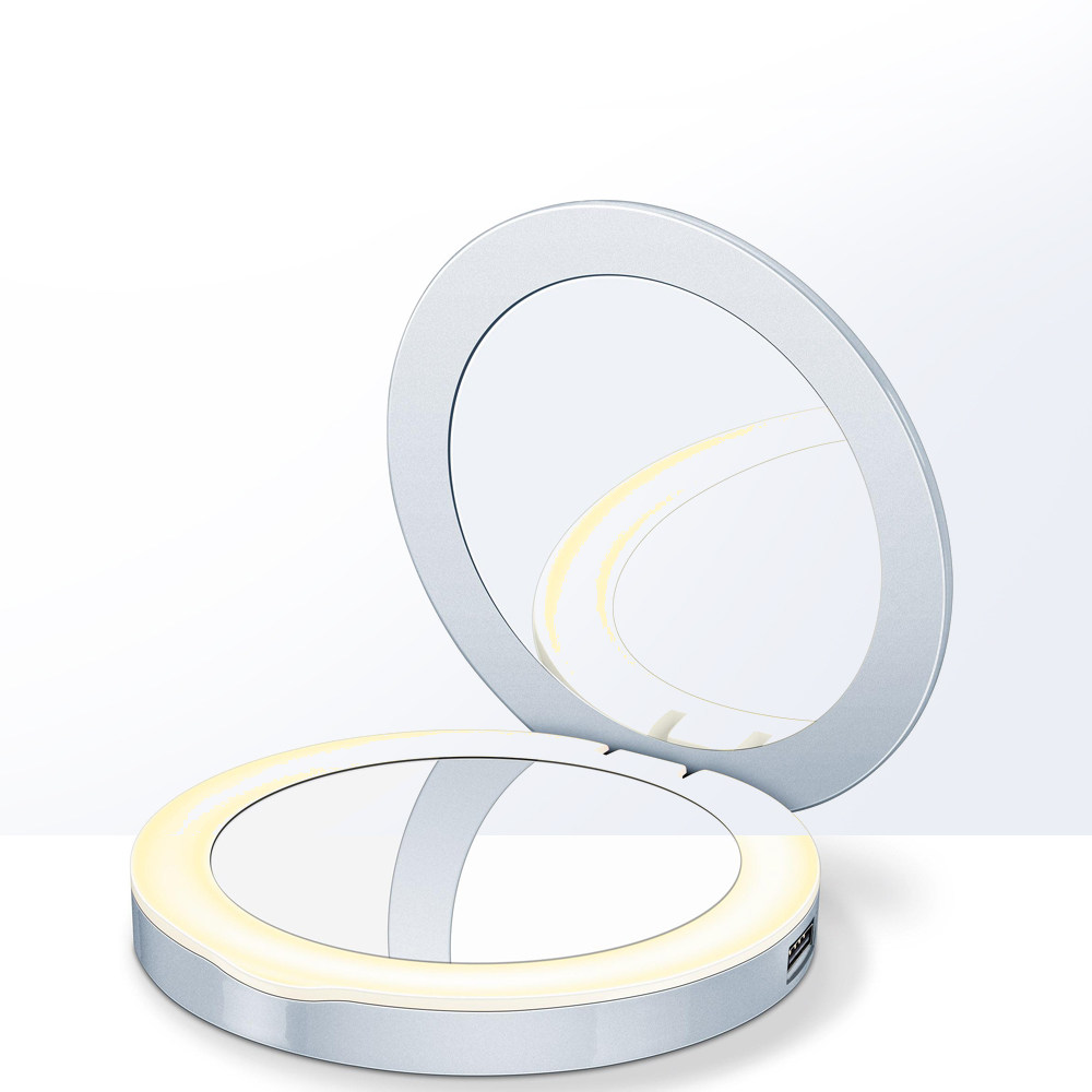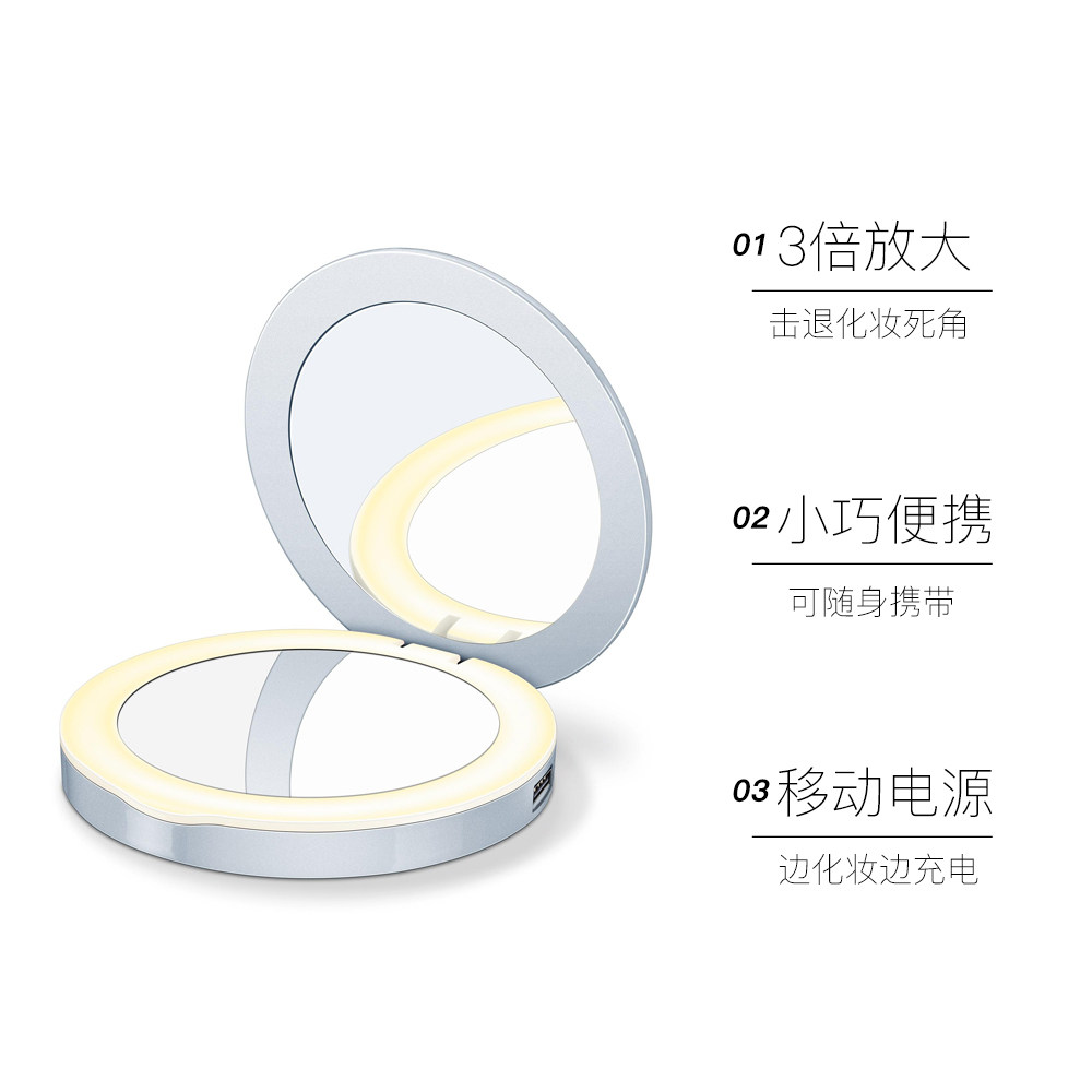 BEURER Немецкое светодиодное портативное зеркало для макияжа с зарядкой зарядки Портативное макияж Складывание мини -двойное зеркало BS39