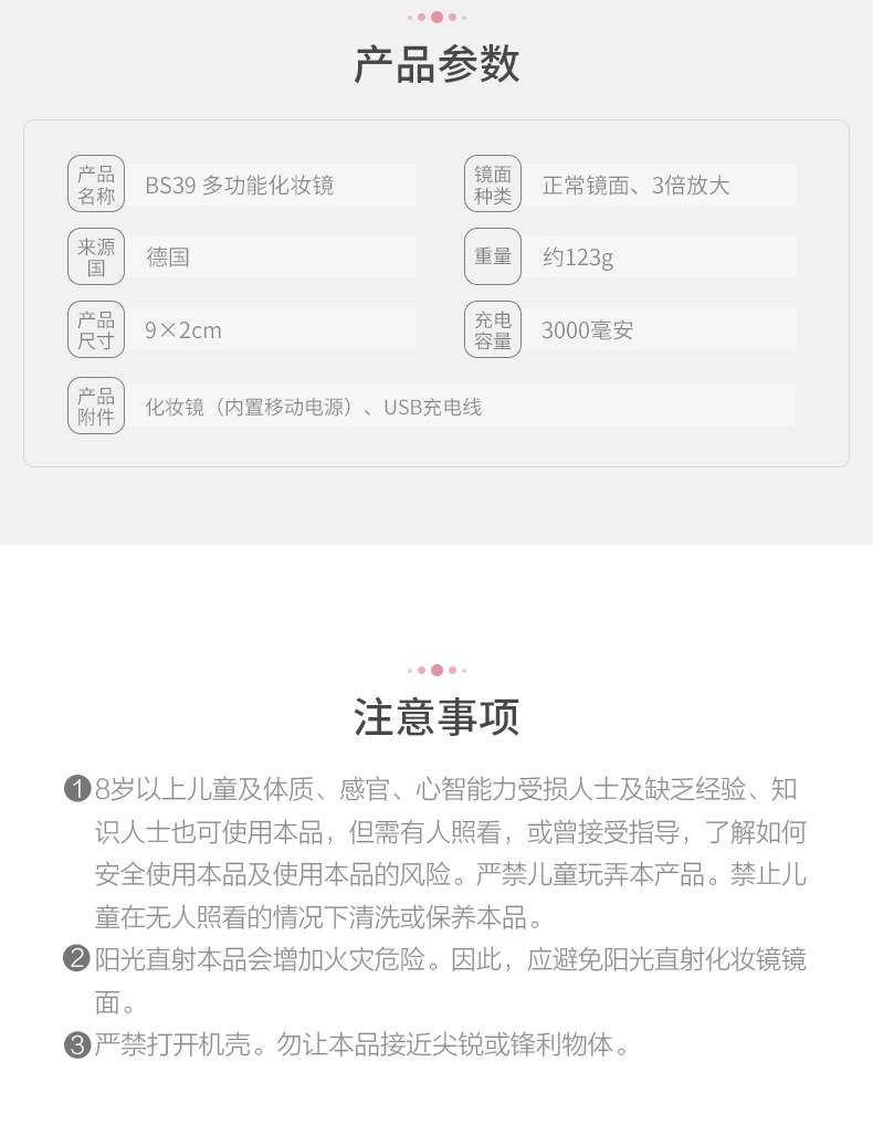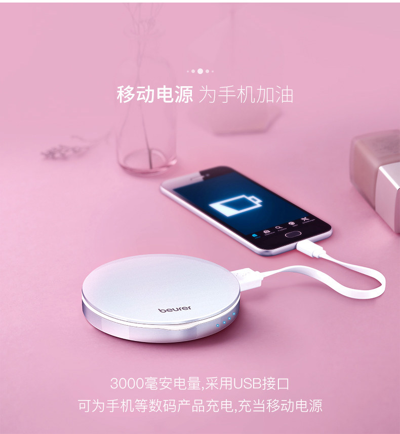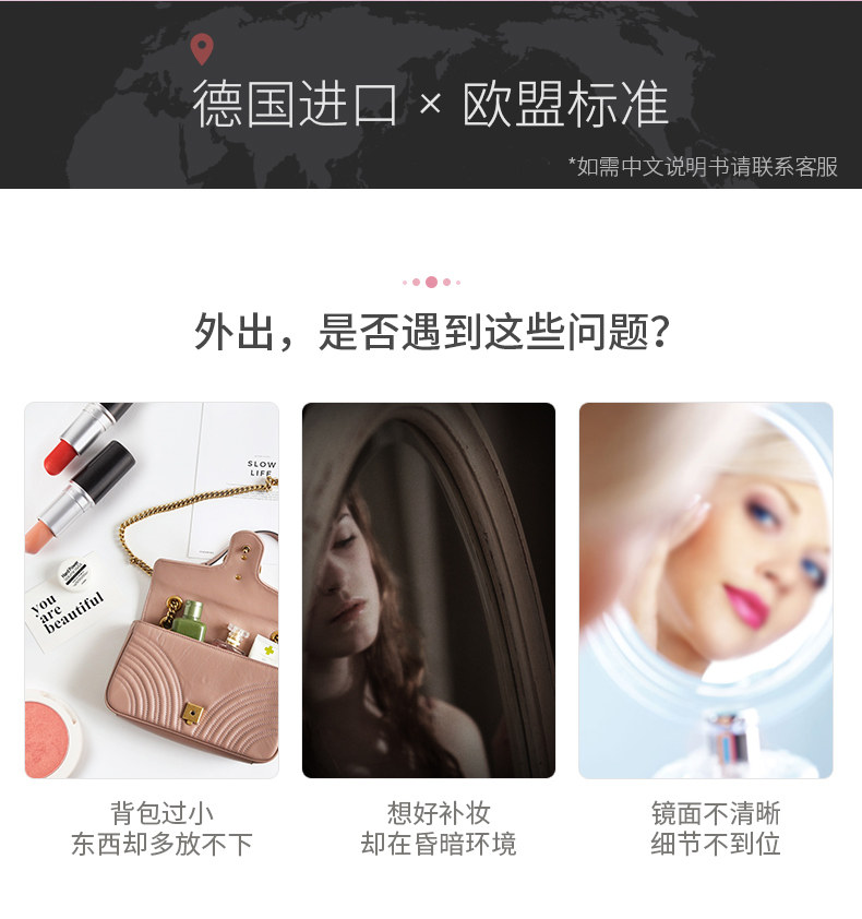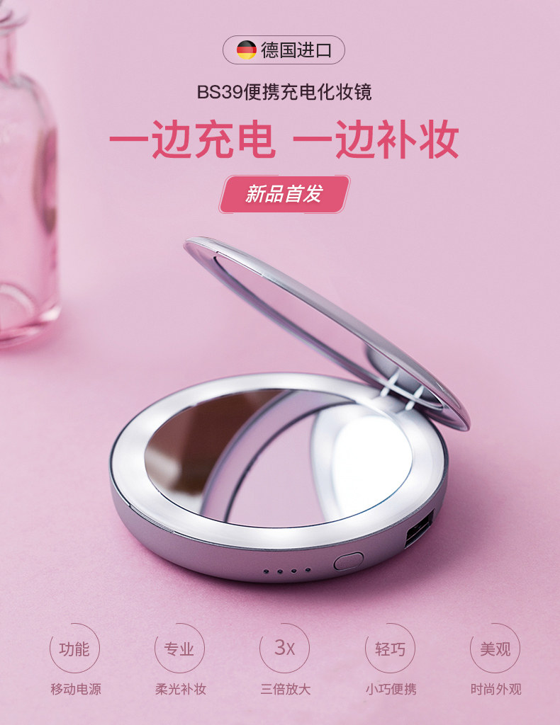 BEURER Немецкое светодиодное портативное зеркало для макияжа с зарядкой зарядки Портативное макияж Складывание мини -двойное зеркало BS39