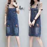 Весенний джинсовый сарафан, длинное джинсовое платье, 2019, большой размер, свободный крой, средней длины