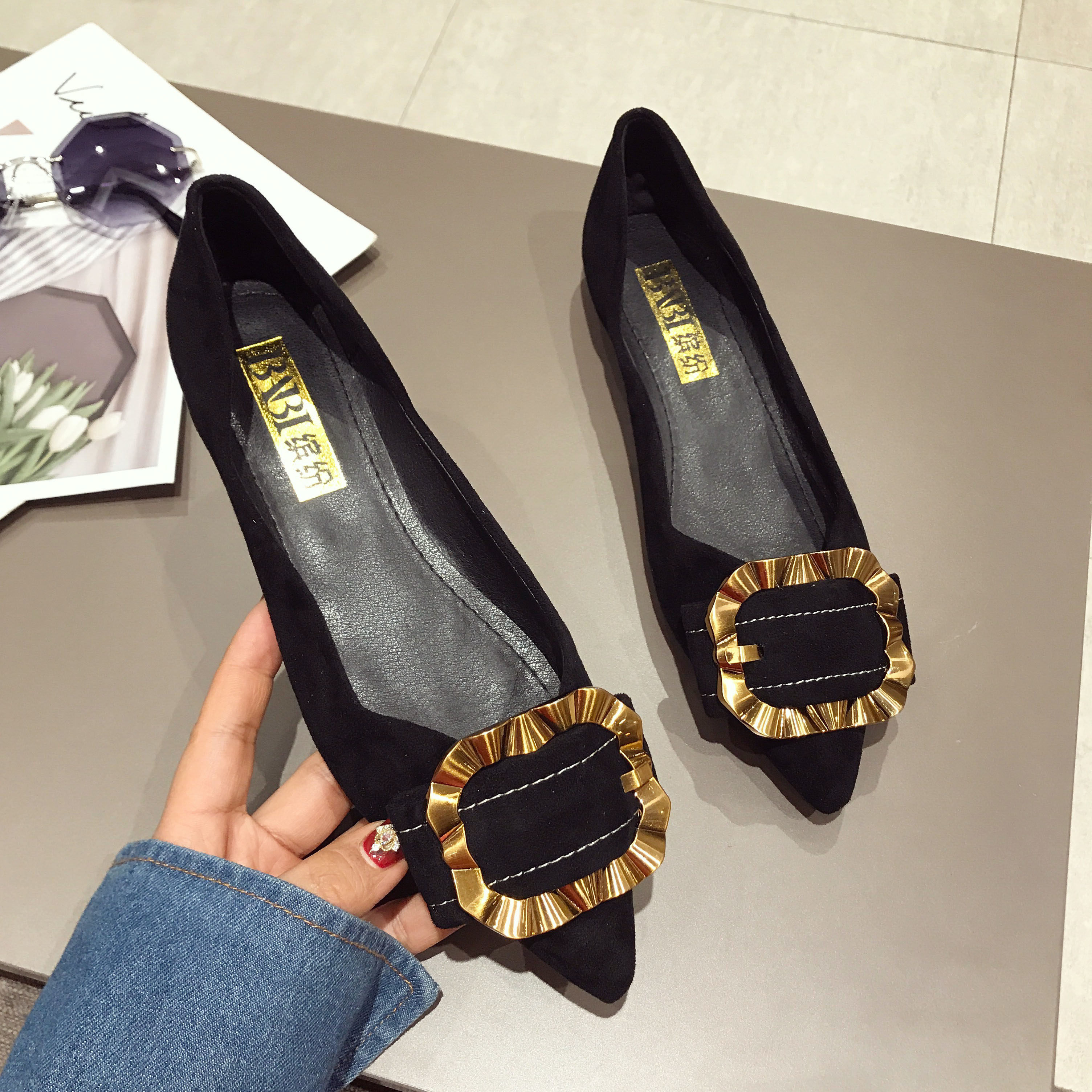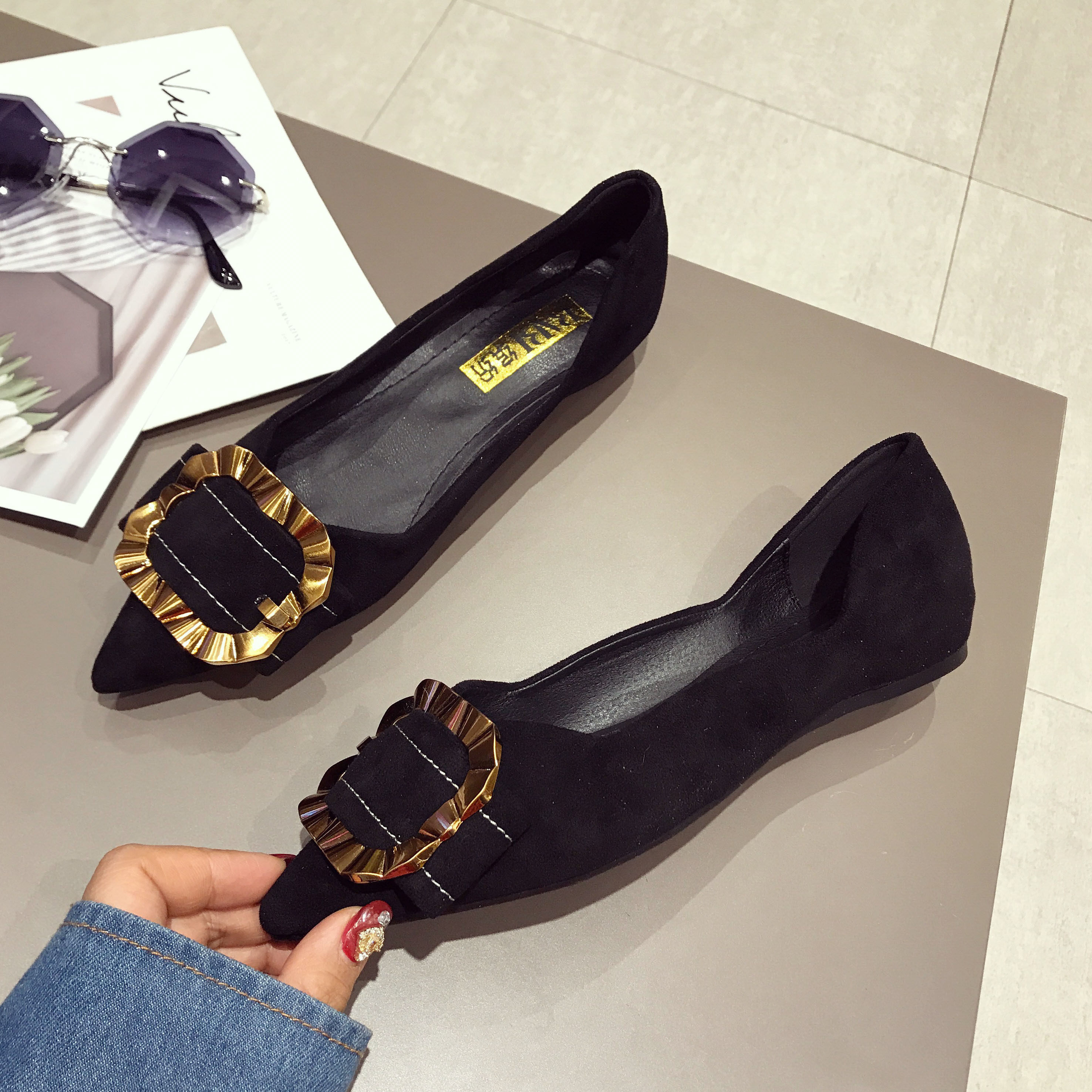 Универсальная весенняя обувь с заостренным носом с низким вырезом, в корейском стиле, коллекция 2021, тренд сезона, популярно в интернете