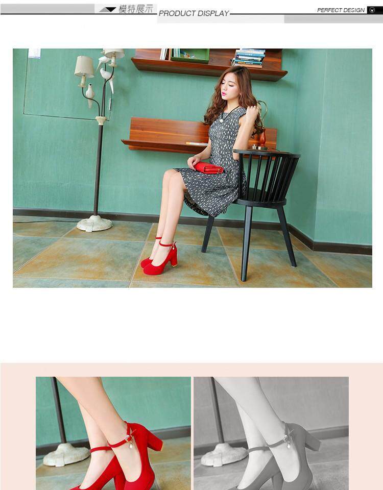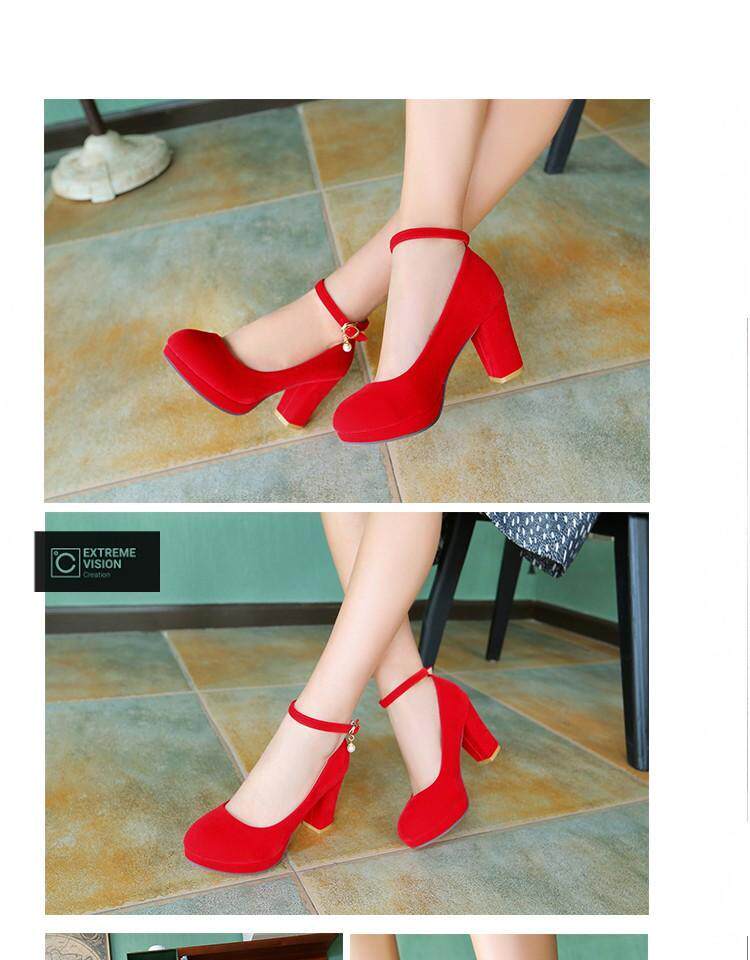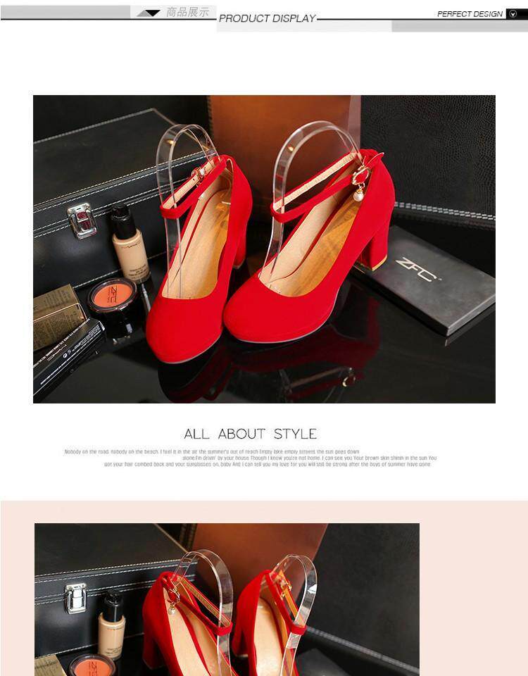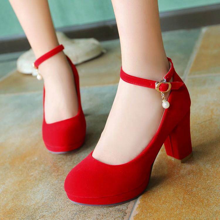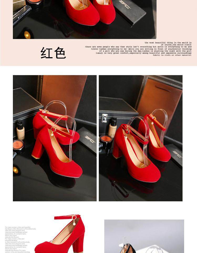 Матовые красные свадебные туфли с ремешком с низким вырезом, черные туфли на высоком каблуке, 2018