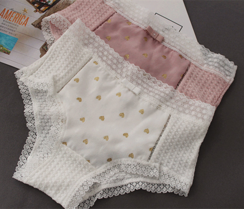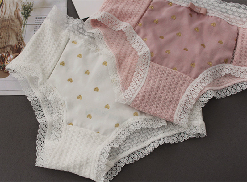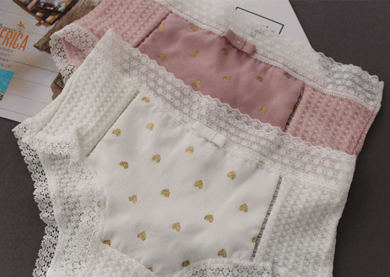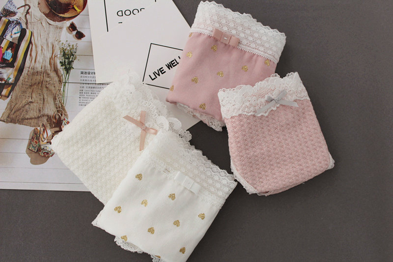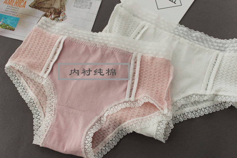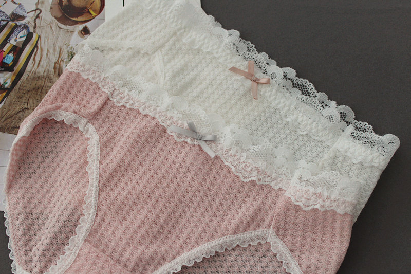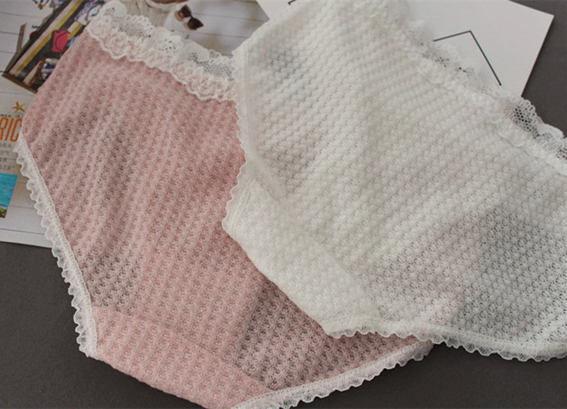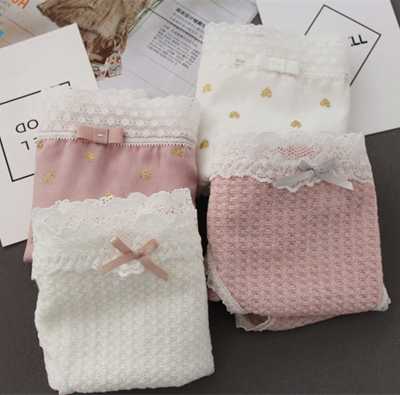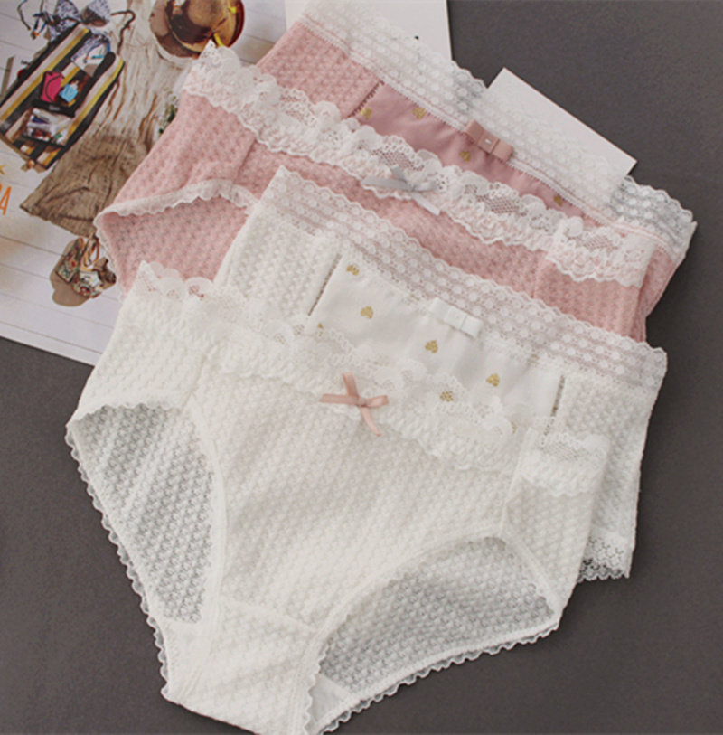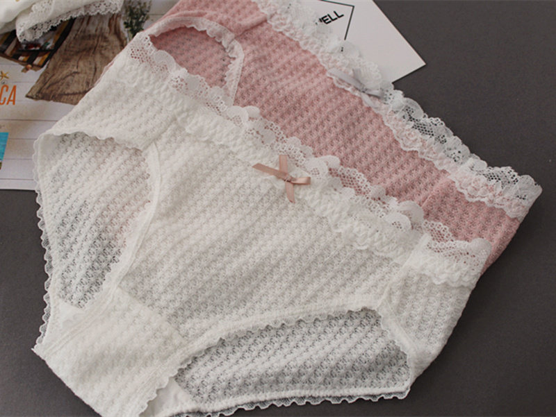 Плетеное японское хлопковое милое кружевное нижнее белье, комфортные трусы, средняя посадка