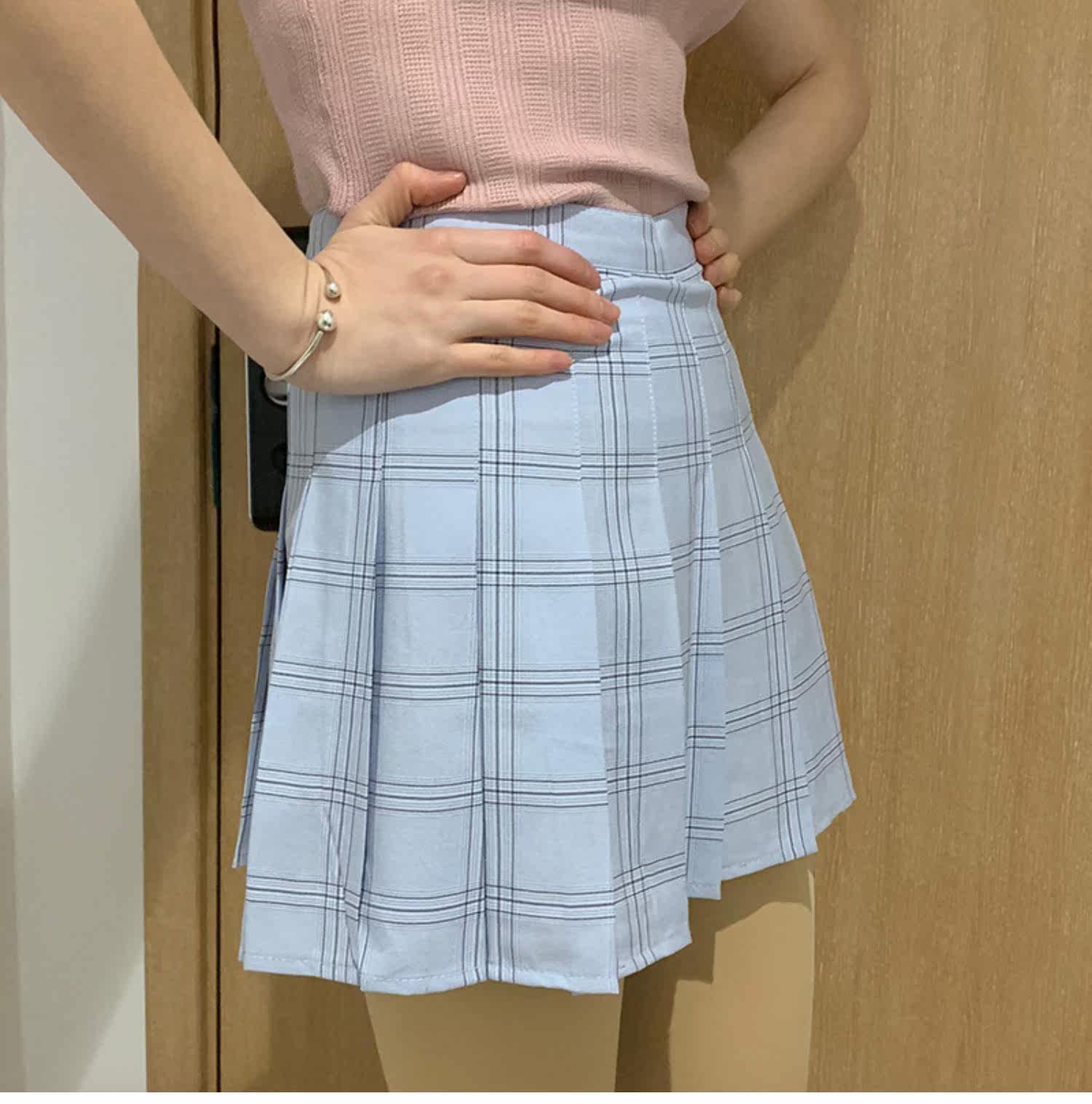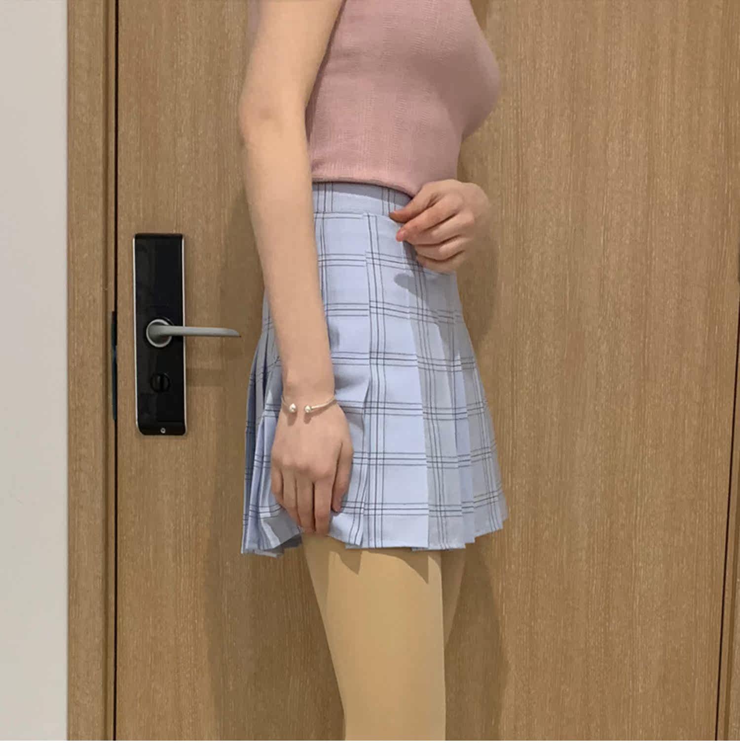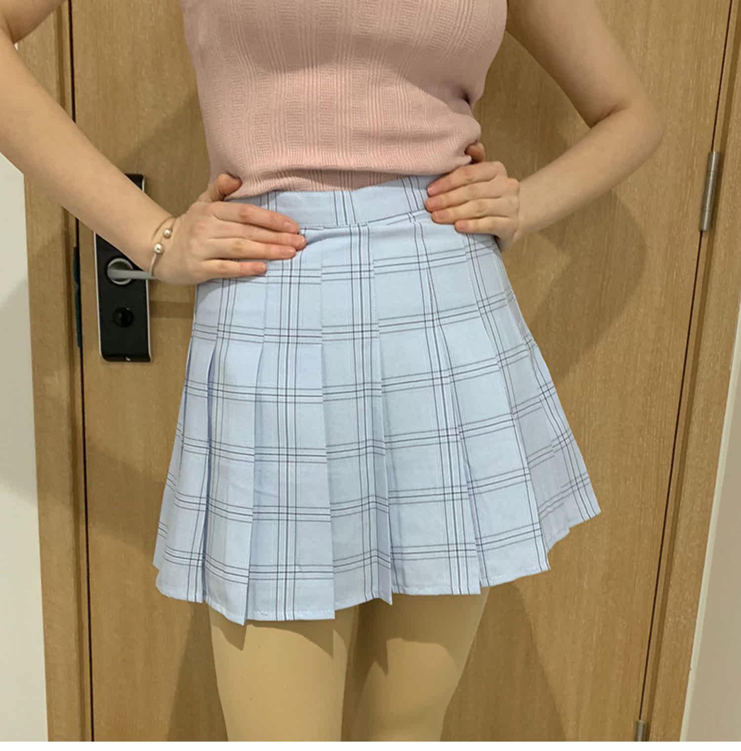 Приталенная синяя теннисная юбка в складку, А-силуэт, высокая талия