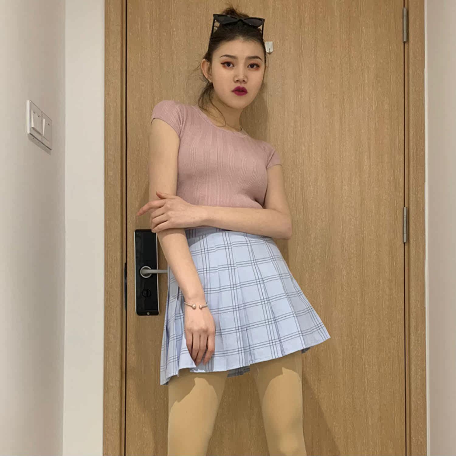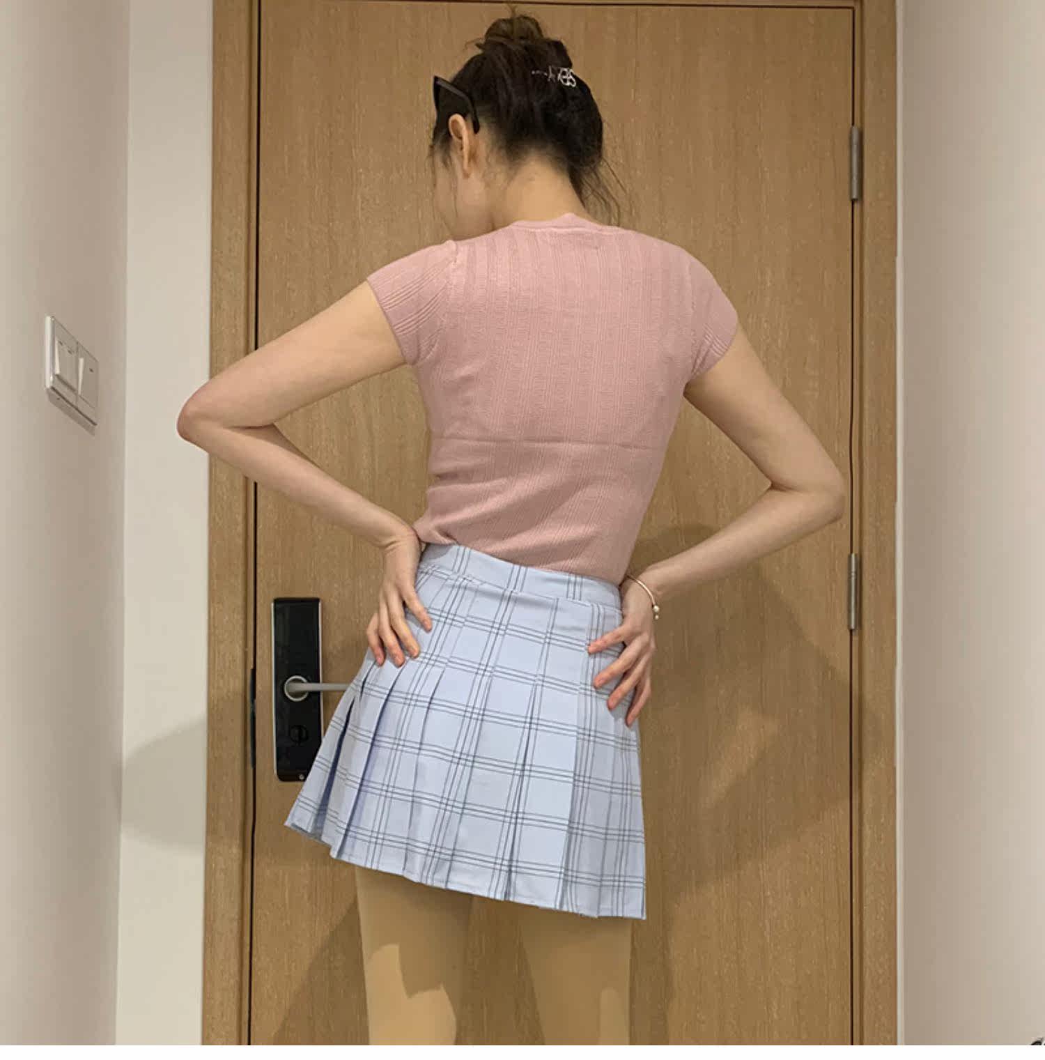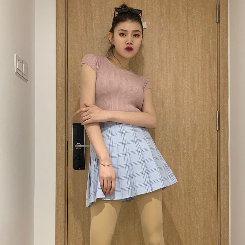 Приталенная синяя теннисная юбка в складку, А-силуэт, высокая талия