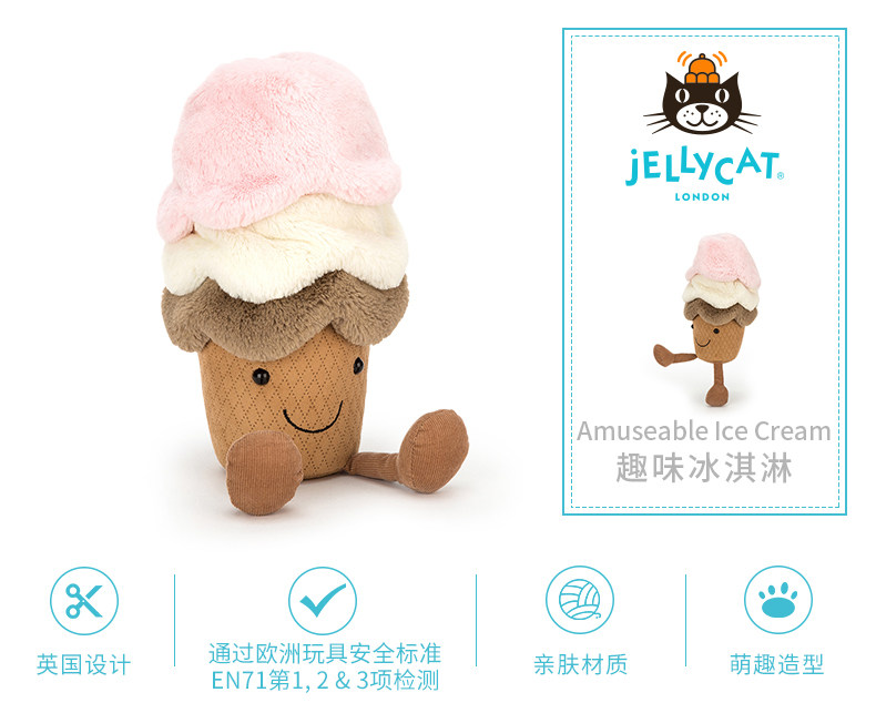 Jellycat, ice, крем для мороженого, милая плюшевая игрушка, Великобритания