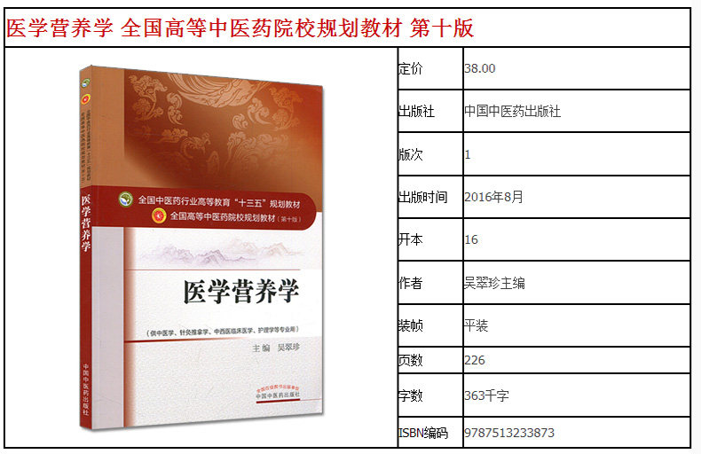 Медицинское питание 13 -е пять -лечебные учебные материалы национальный национальный китайский колледж китайской медицины.